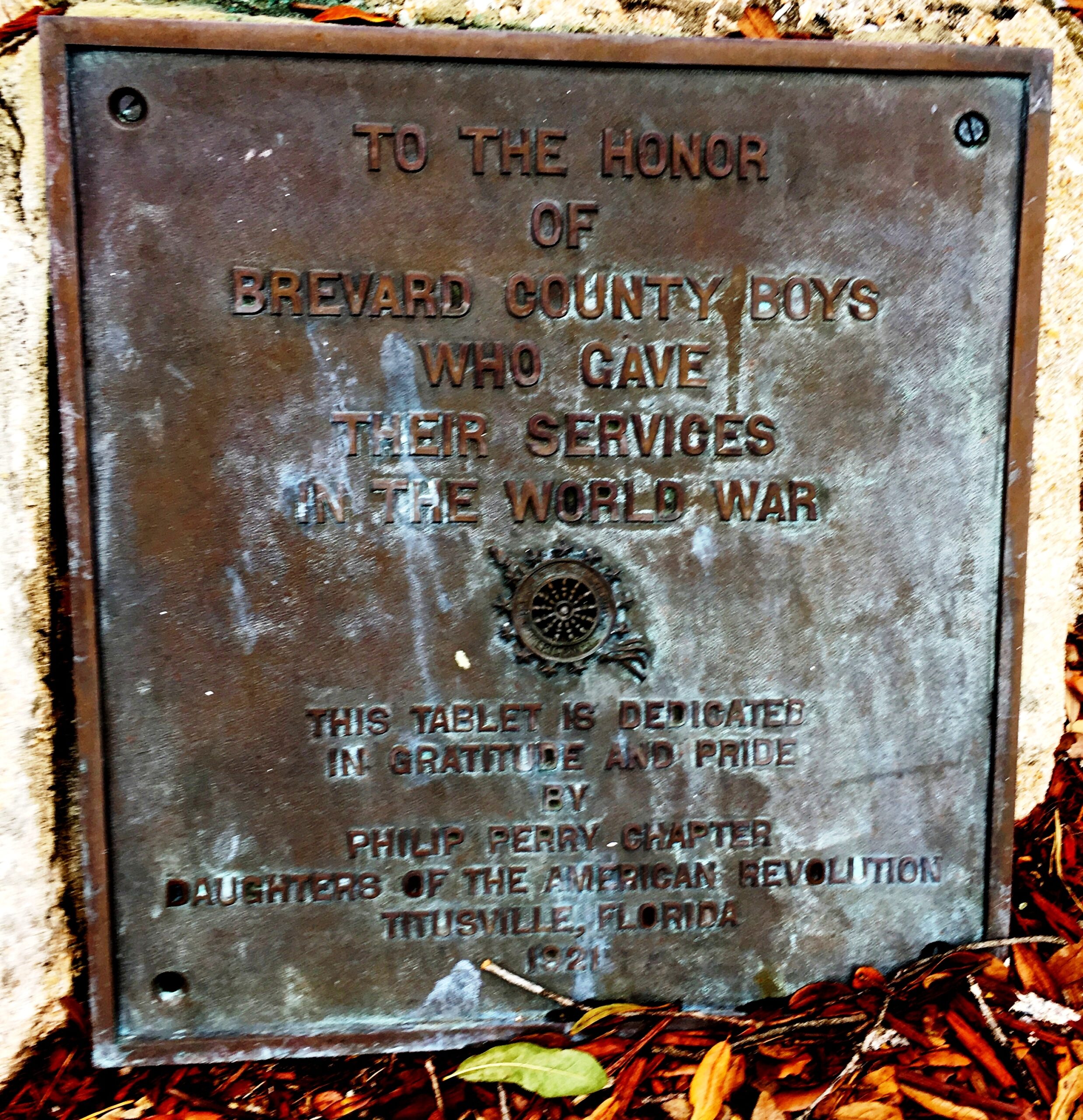 BREVARD COUNTY BOYS WORLD WAR MEMORIAL PLAQUE