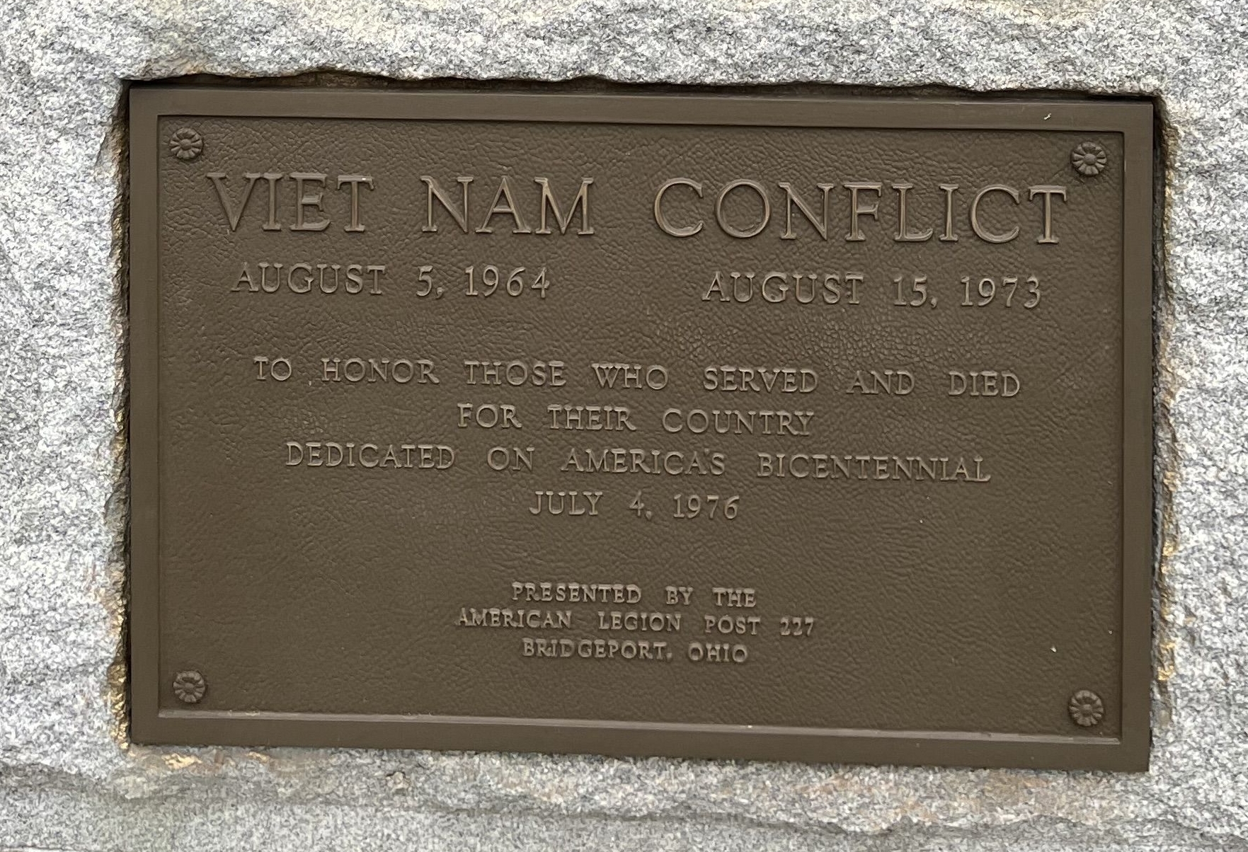 BRIDGEPORT, OHIO WAR VETERANS MEMORIAL PLAQUE B