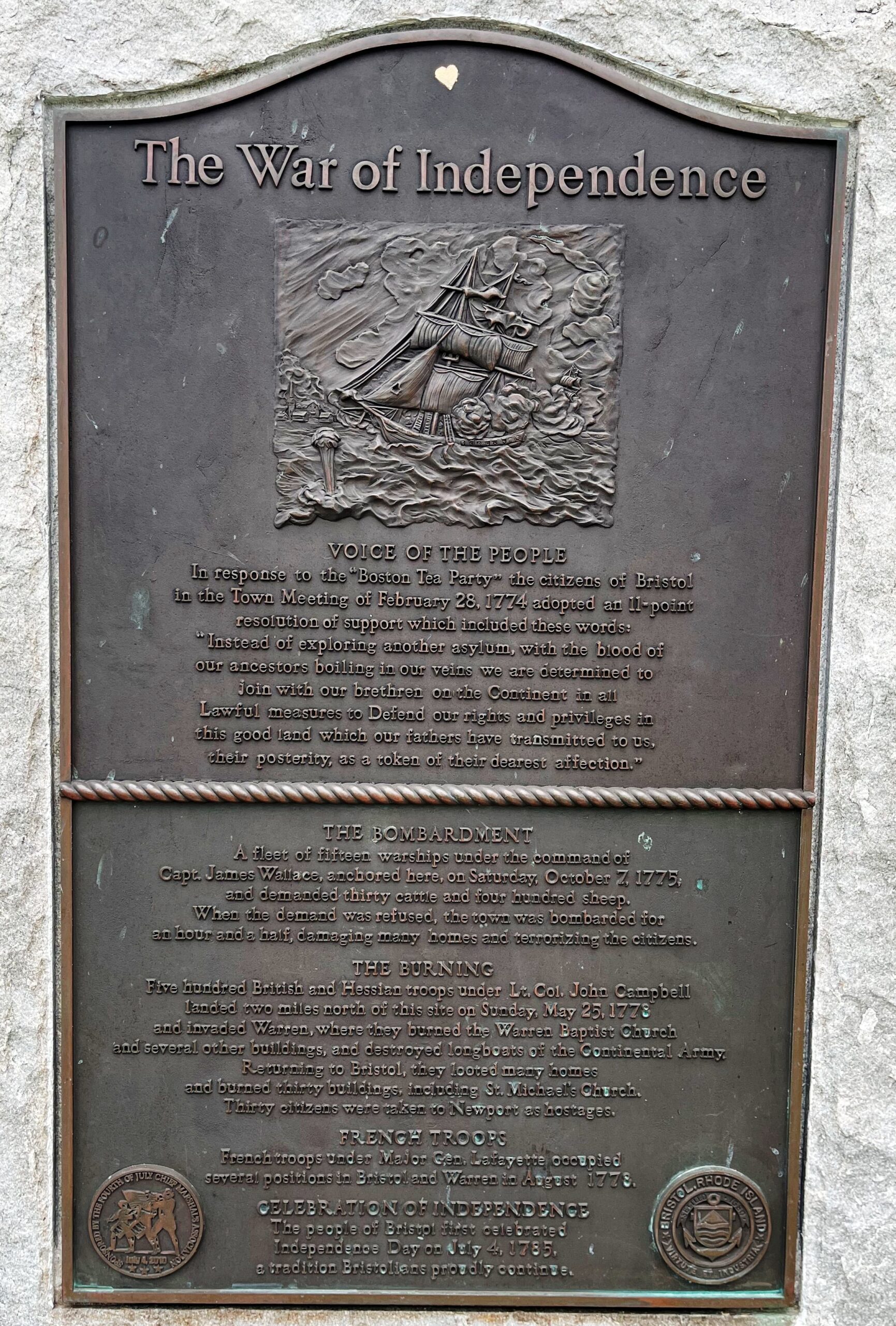 BRISTOL THE WAR OF INDEPENDENCE MEMORIAL PLAQUE