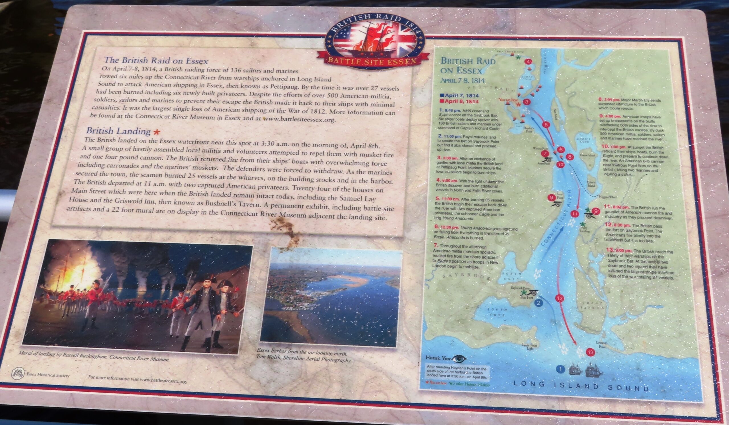 BRITISH RAID 1814 BATTLE SITE ESSEX WAR MEMORIAL PANEL