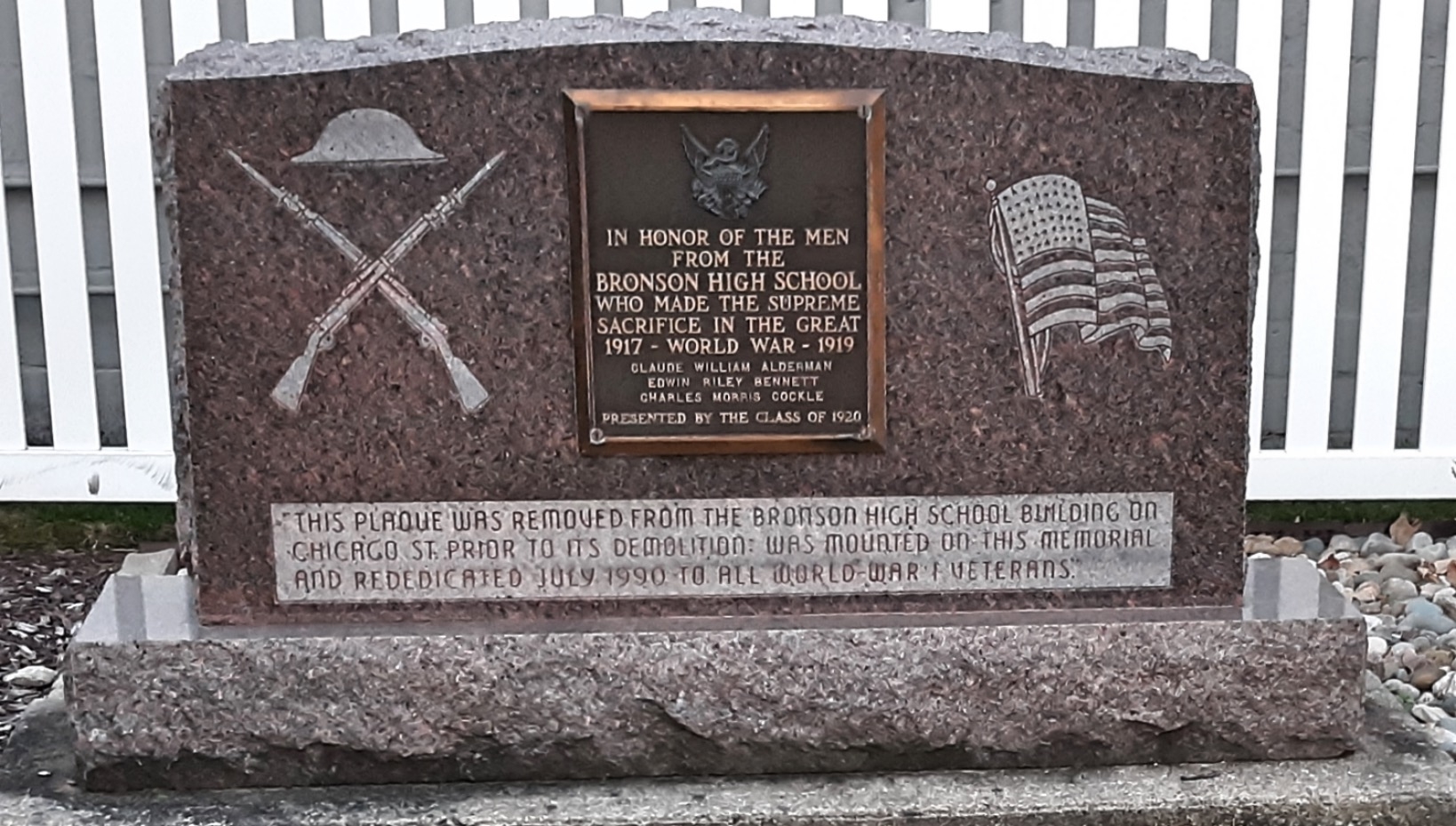 BRONSON HIGH SCHOOL GREAT WORLD WAR SUPREME SACRIFICE MEMORIAL