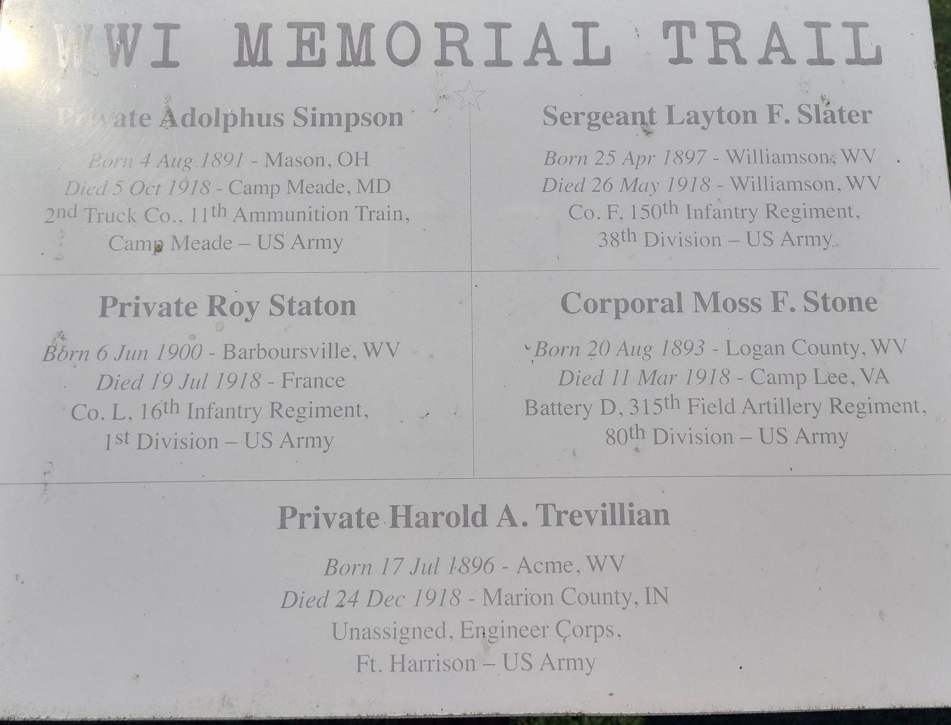 SEE ALSO-CABELL COUNTY WWI MEMORIAL TRAIL
