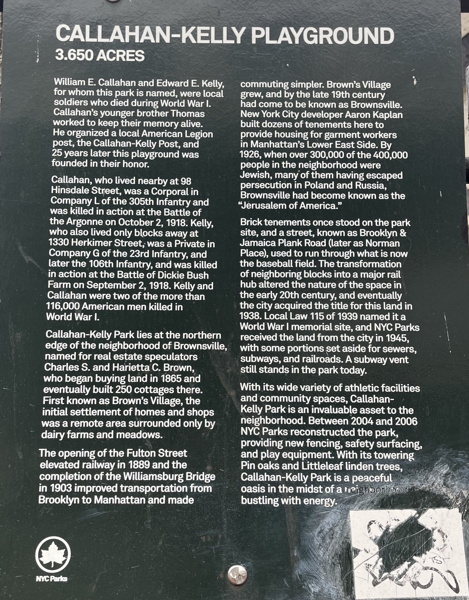 CALLAHAN-KELLY PLAYGROUND MEMORIAL PLAQUE