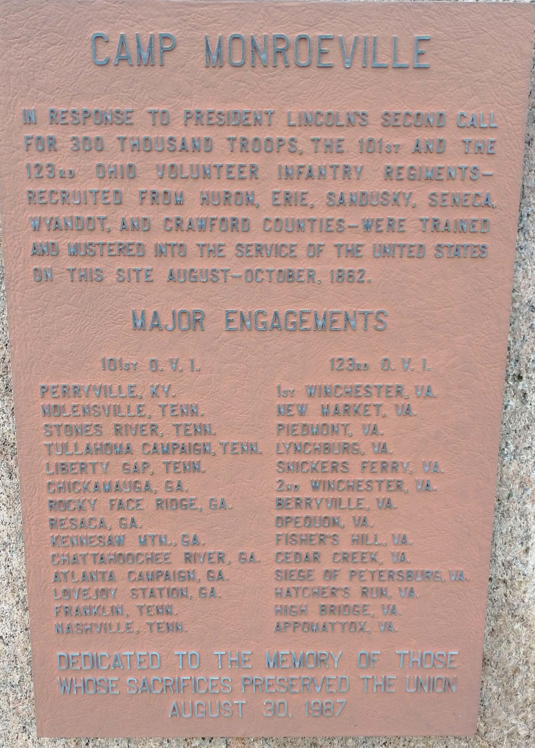 CAMP MONROEVILLE WAR MEMORIAL PLAQUE