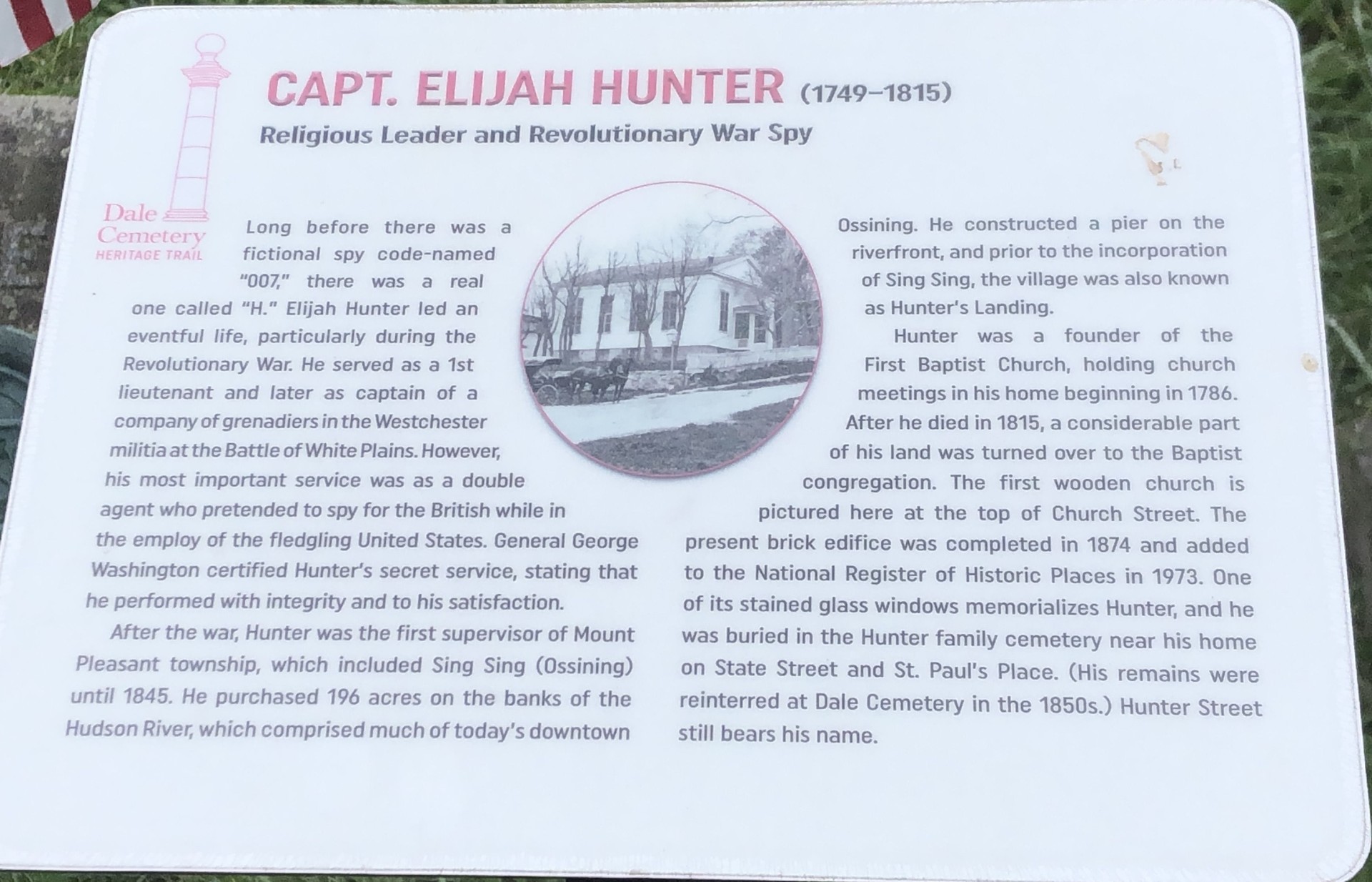CAPT. ELIJAH HUNTER REVOLUTIONARY WAR MEMORIAL PLAQUE