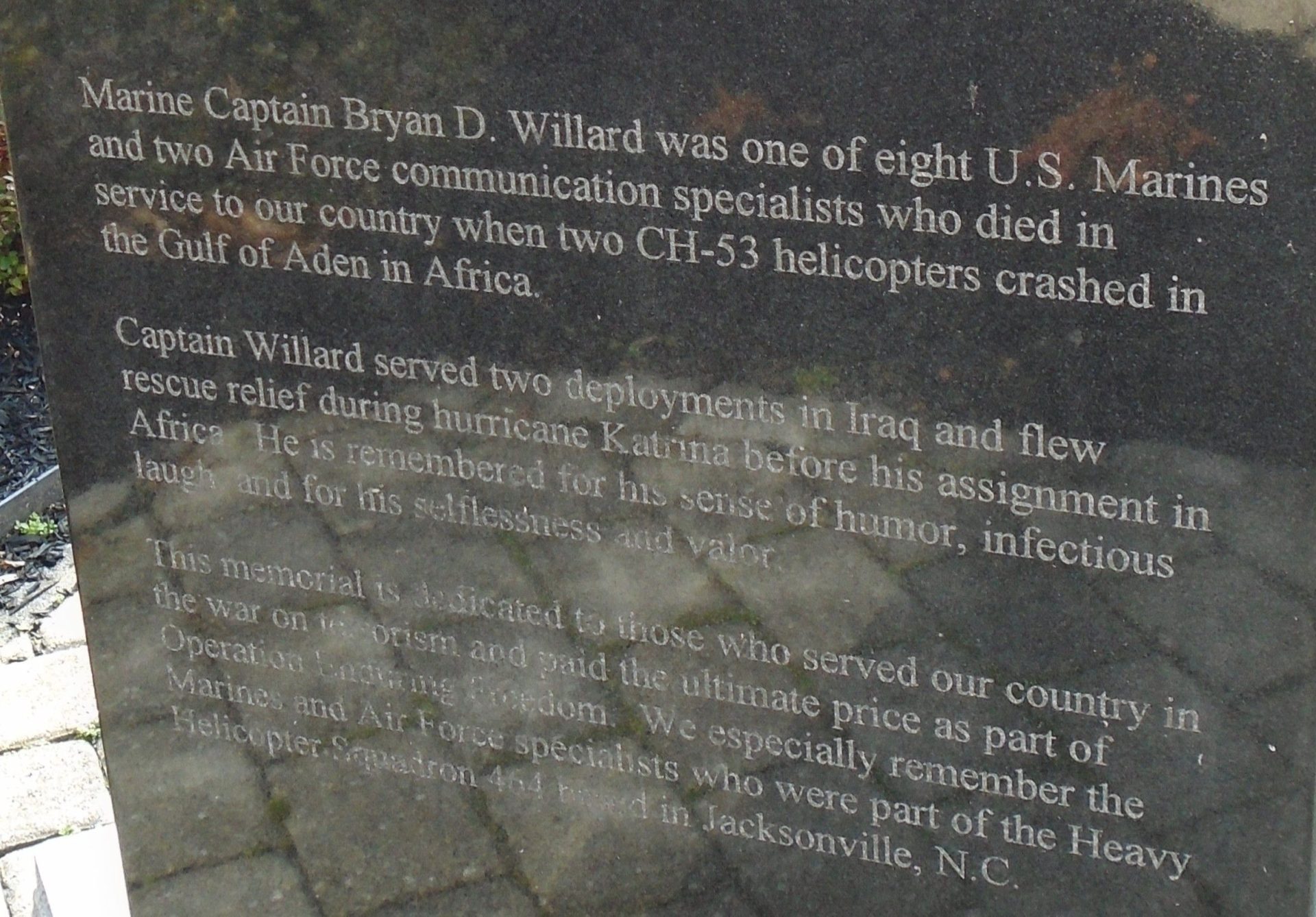 CAPTAIN BRYAN D. WILLARD, USMC MEMORIAL SIDE B