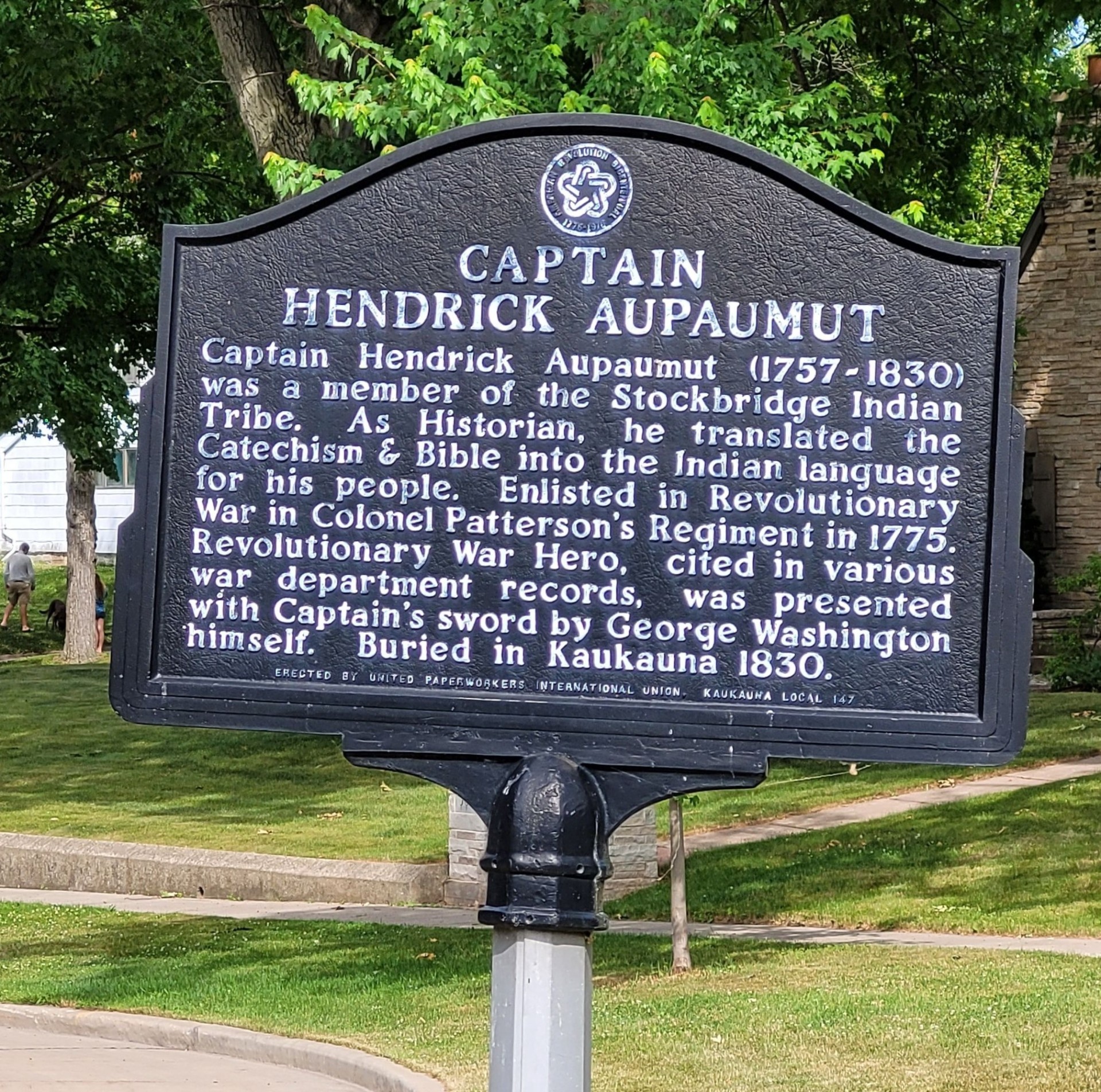 CAPTAIN HENDRICK AUPAUMUT REVOLUTIONARY WAR MEMORIAL MARKER