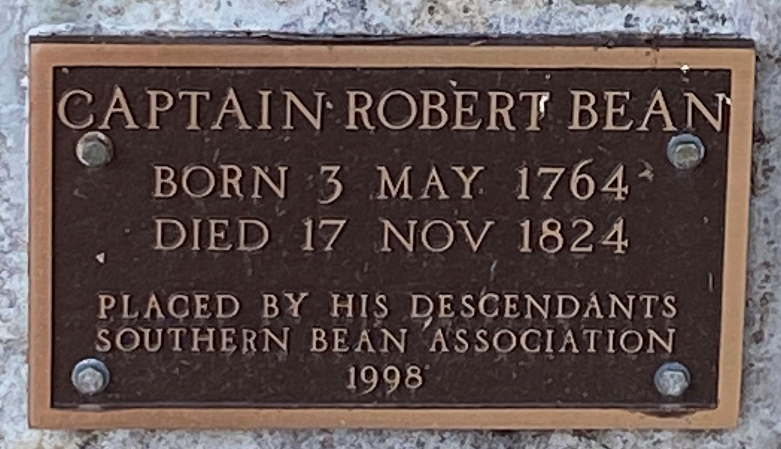 CAPTAIN ROBERT BEAN WAR MEMORIAL PLAQUE B