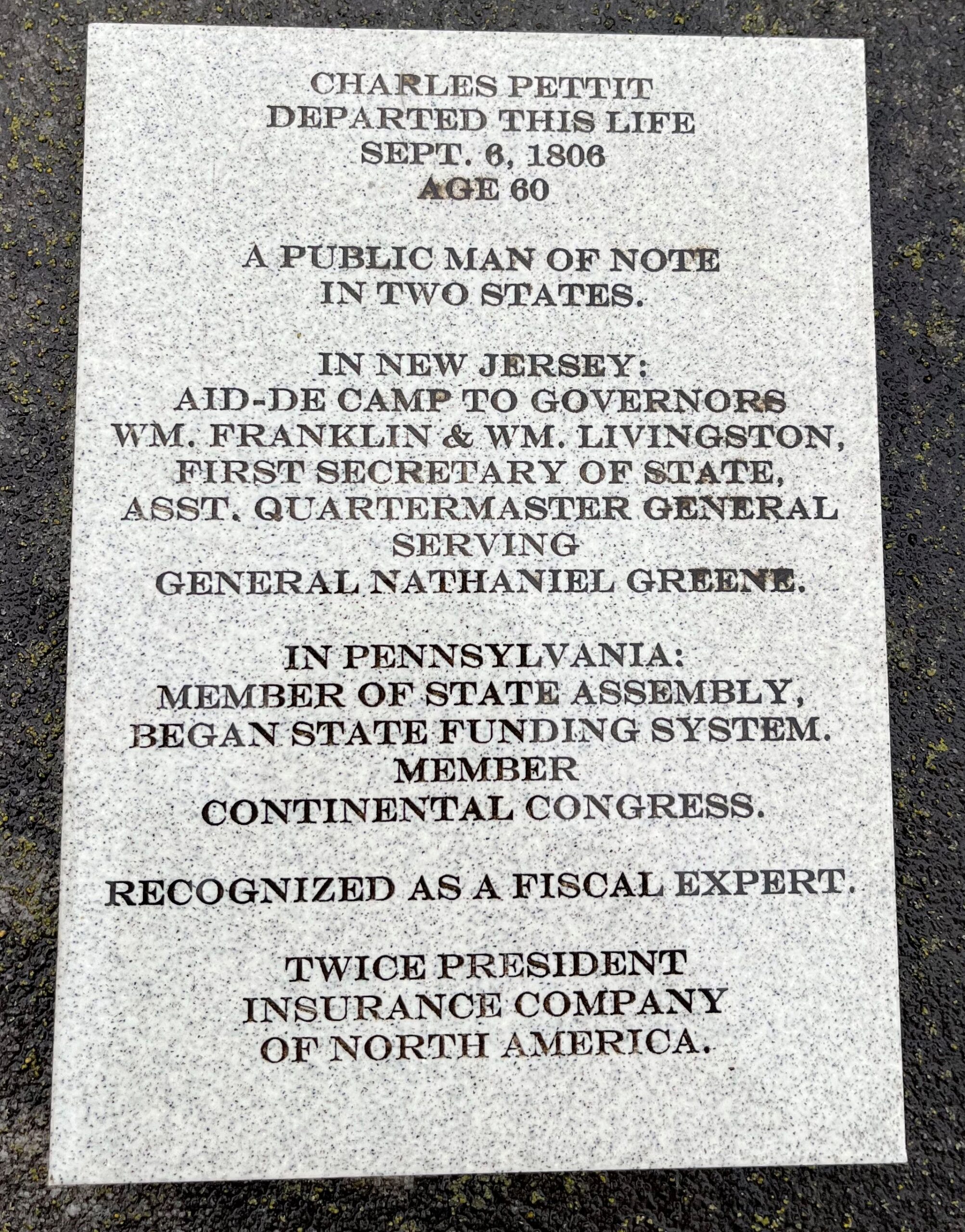 CHARLES PETTIT REVOLUTIONARY WAR MEMORIAL STONE