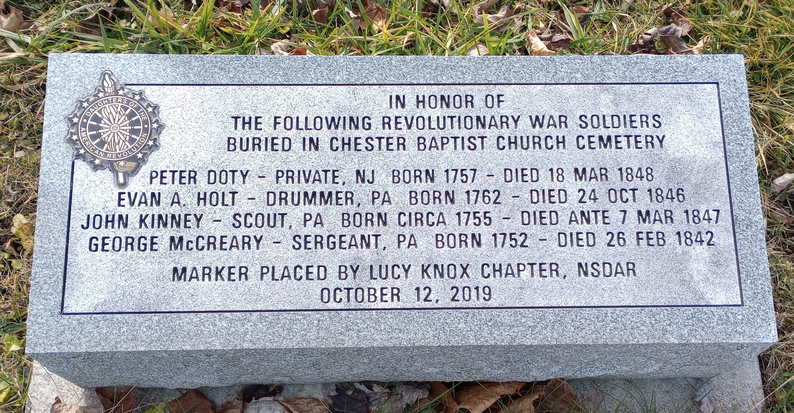 CHESTER BAPTIST CHURCH CEMETERY REVOLUTIONARY SOLDIERS MEMORIAL