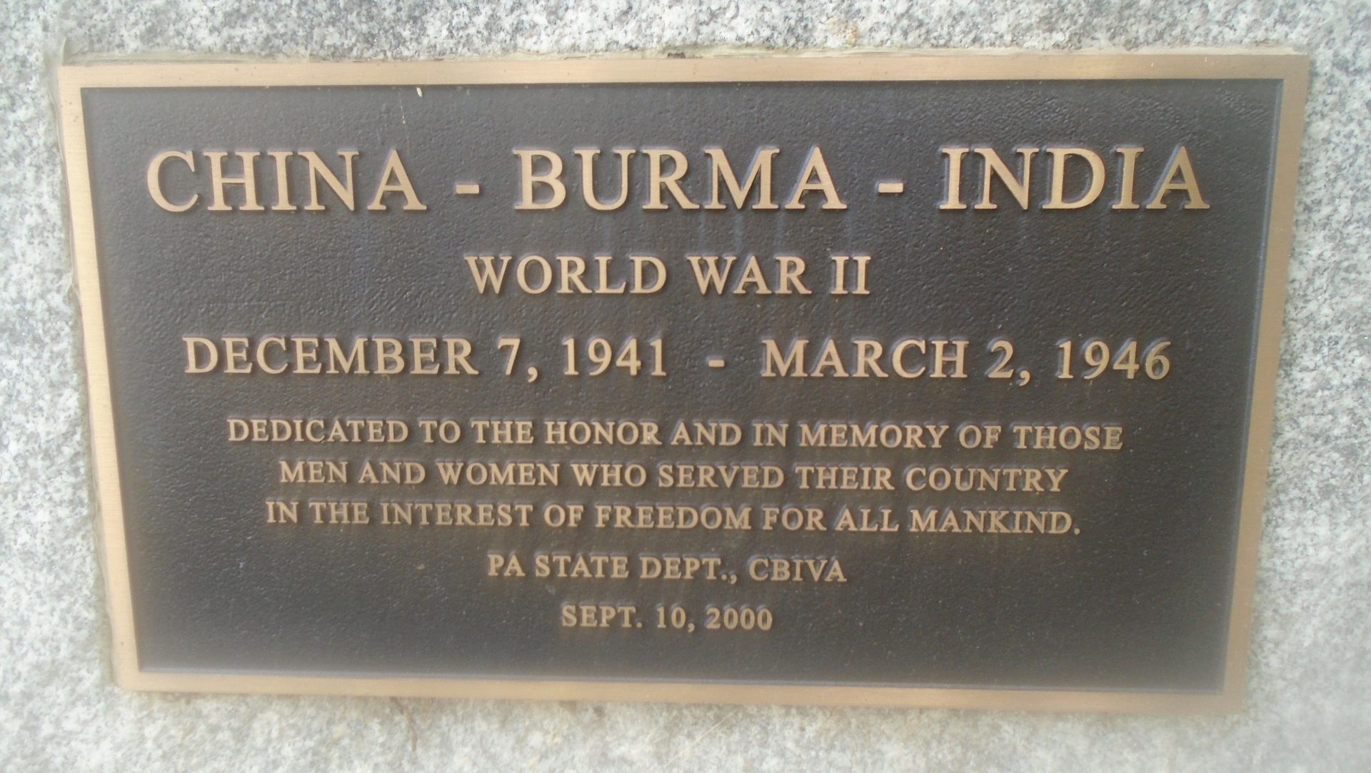 CHINA-BURMA-INDIA VETERANS WAR MEMORIAL PLAQUE A