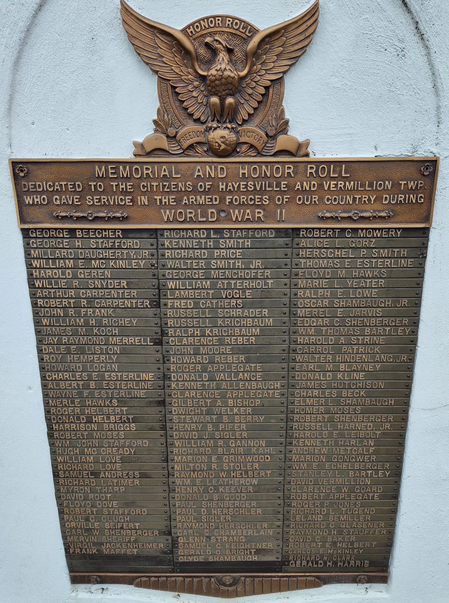 CITIZENS OF HAYESVILLE AND VERMILLION TWP WORLD WAR II MEMORIAL PLAQUE