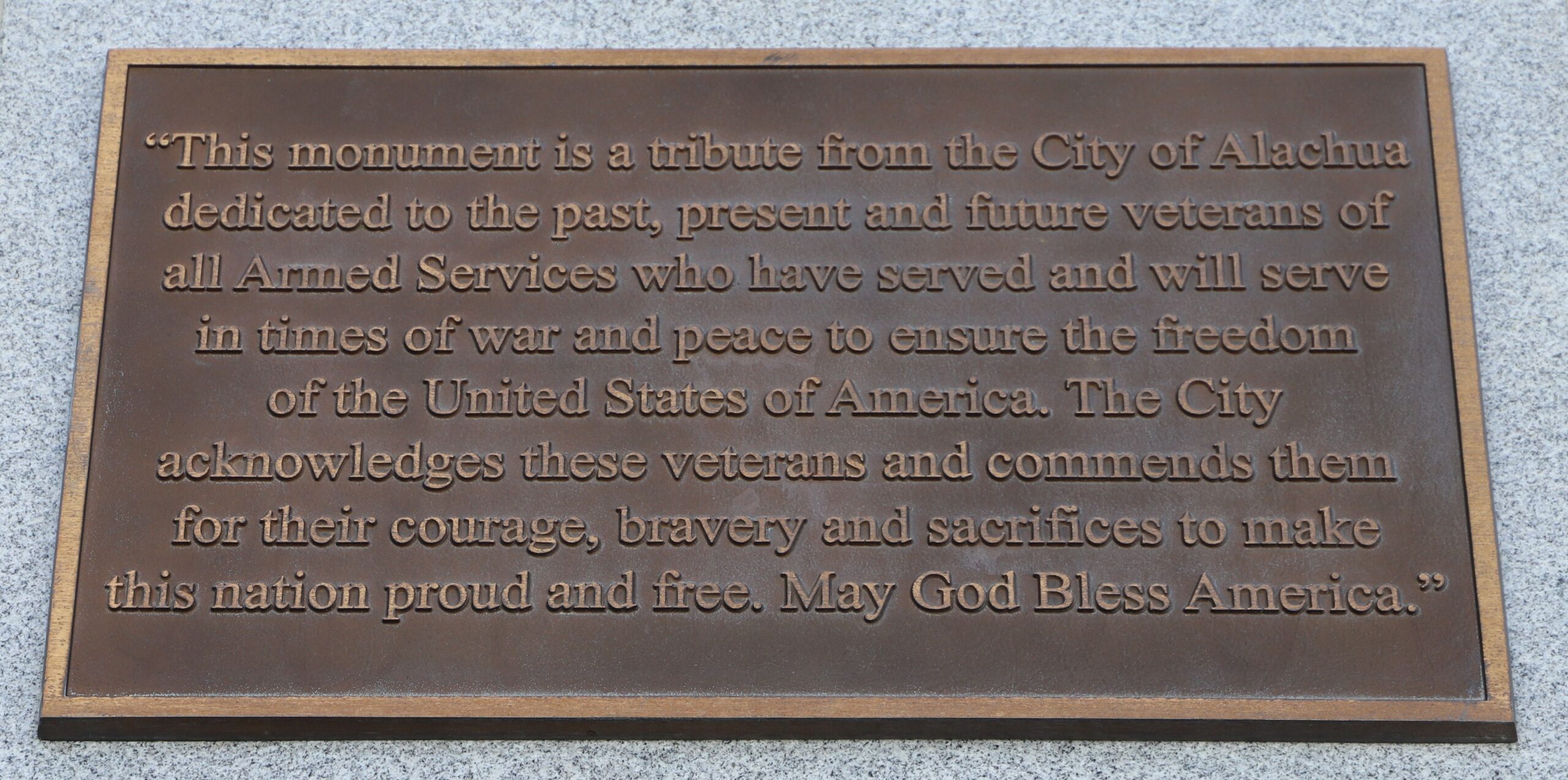 CITY OF ALACHUA VETERANS MEMORIAL PLAQUE