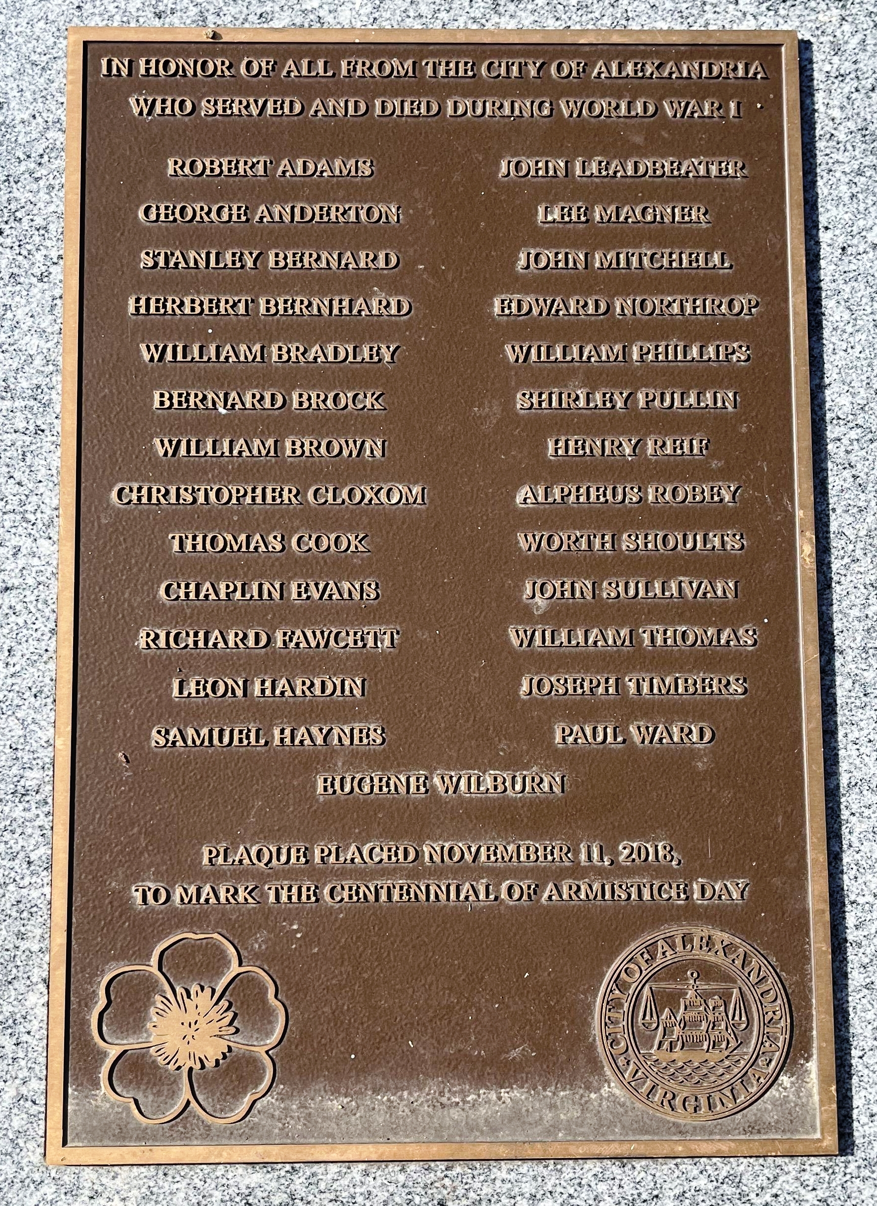 CITY OF ALEXANDRIA WORLD WAR I MEMORIAL PLAQUE