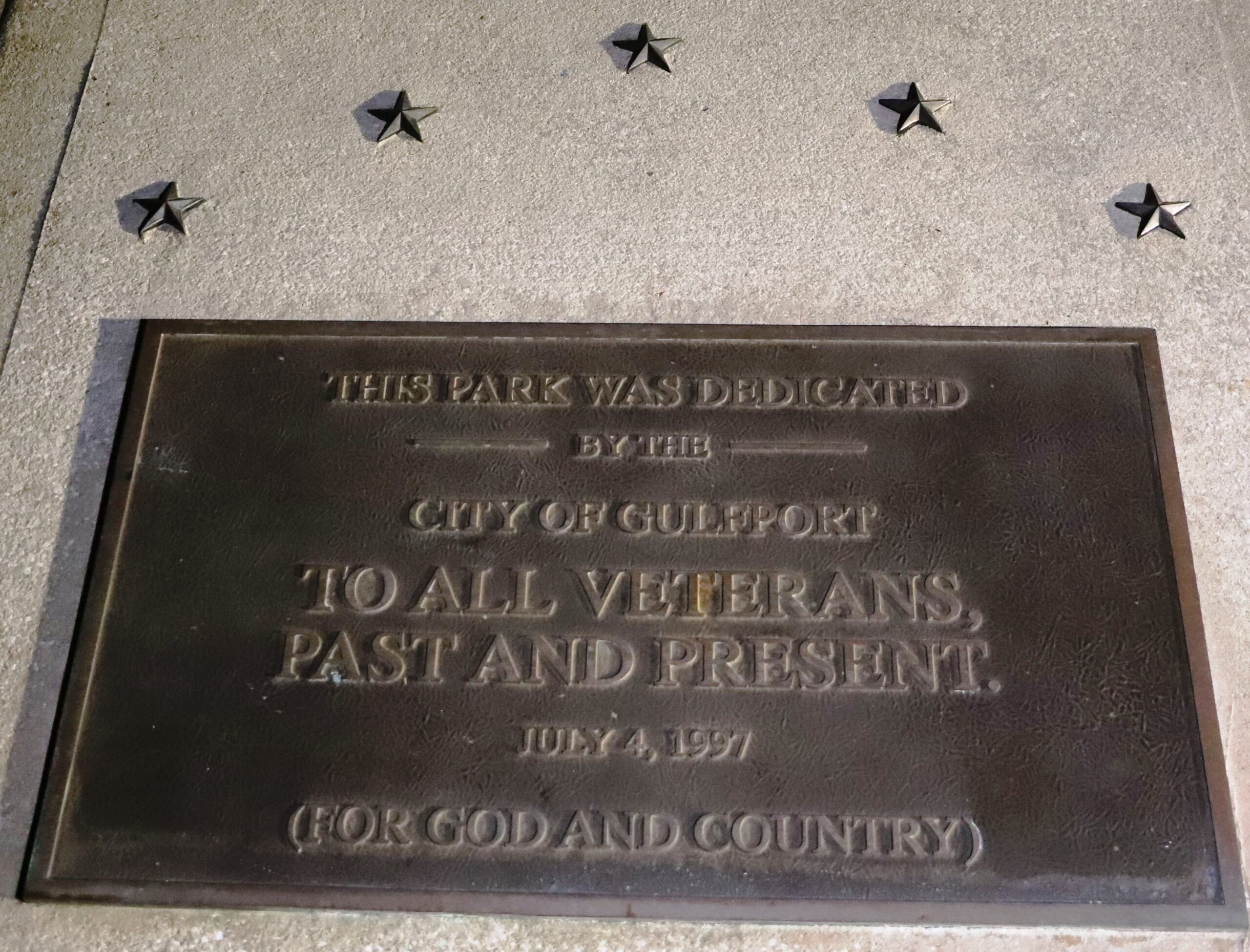 CITY OF GULFPORT ALL VETERANS MEMORIAL PARK PLAQUE