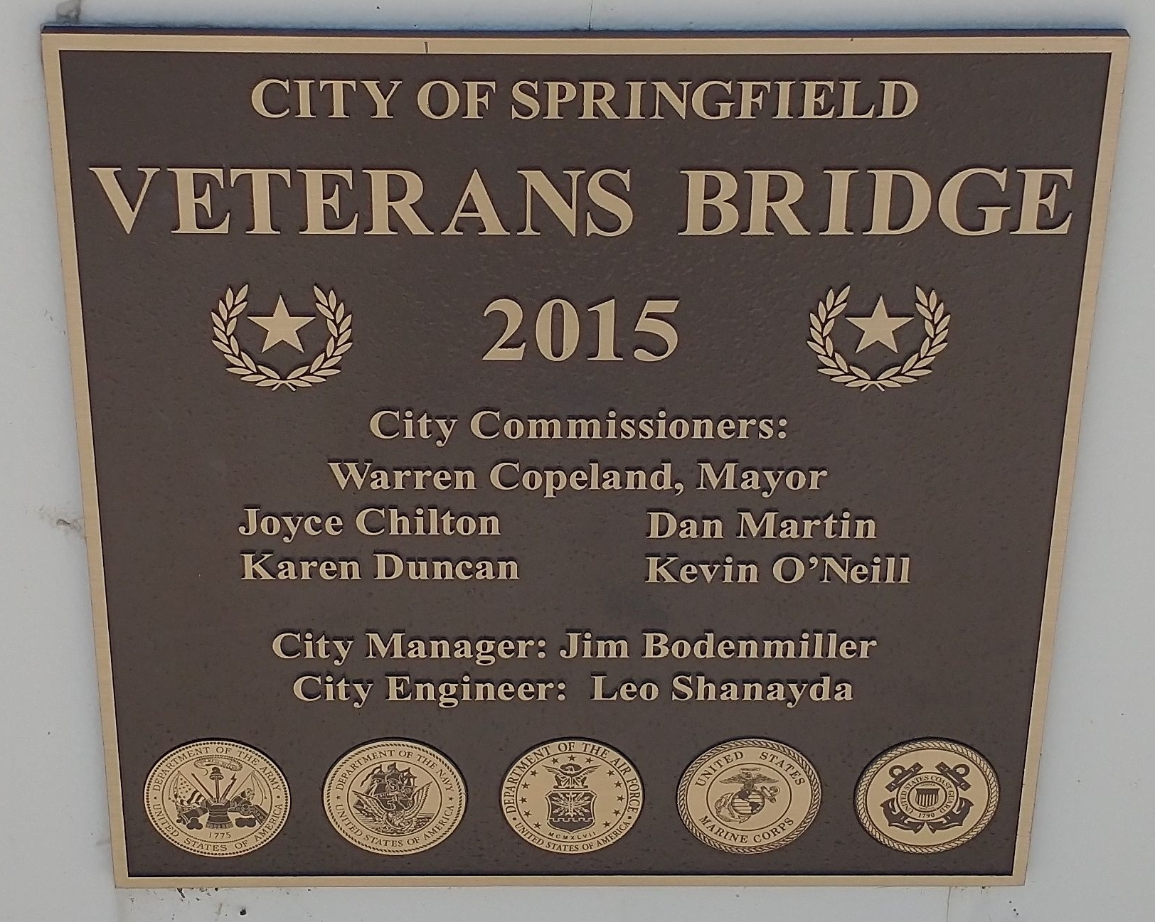 CITY OF SPRINGFIELD VETERANS BRIDGE MEMORIAL PLAQUE