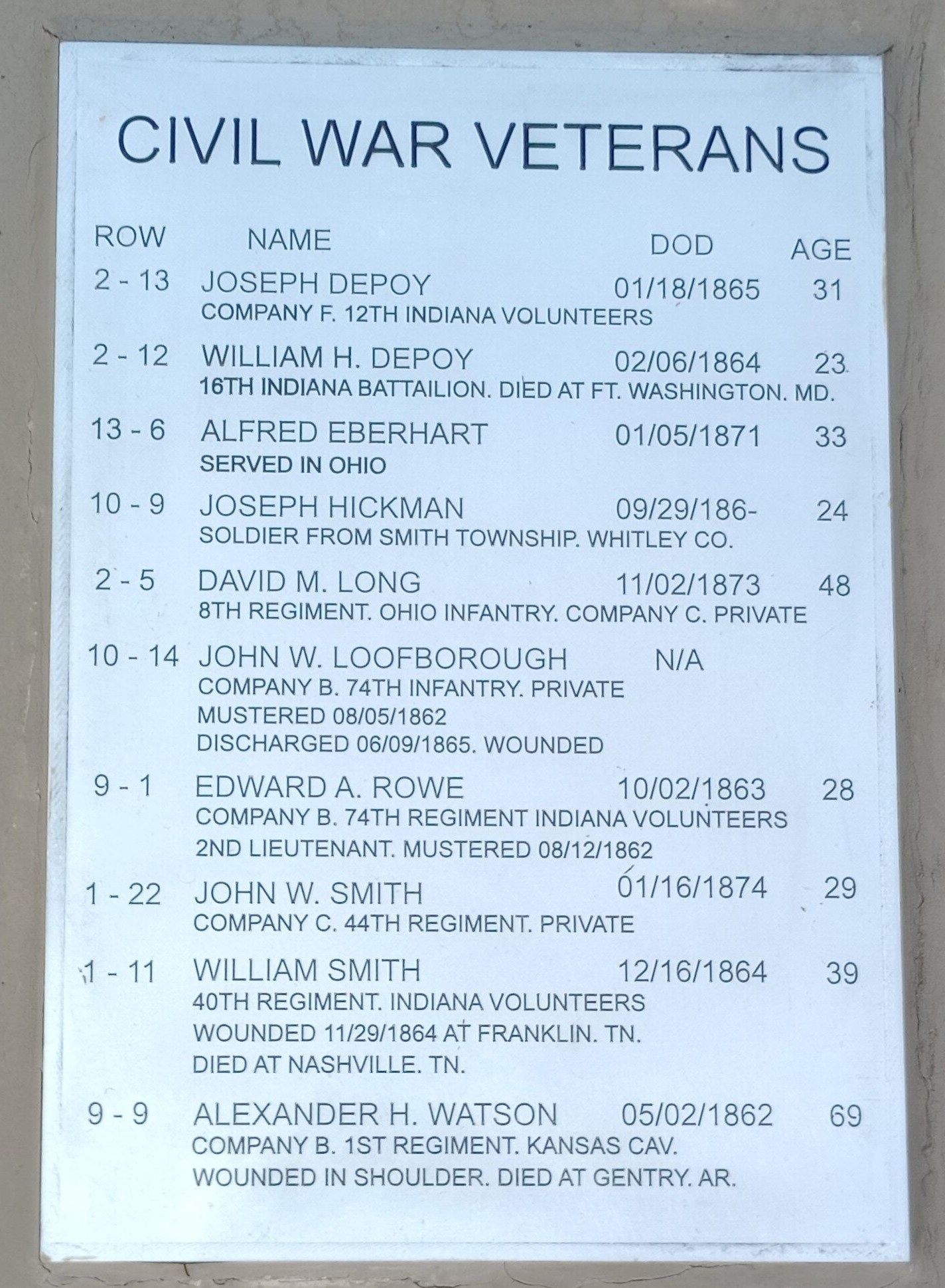 CIVIL WAR VETERANS MEMORIAL PLAQUE