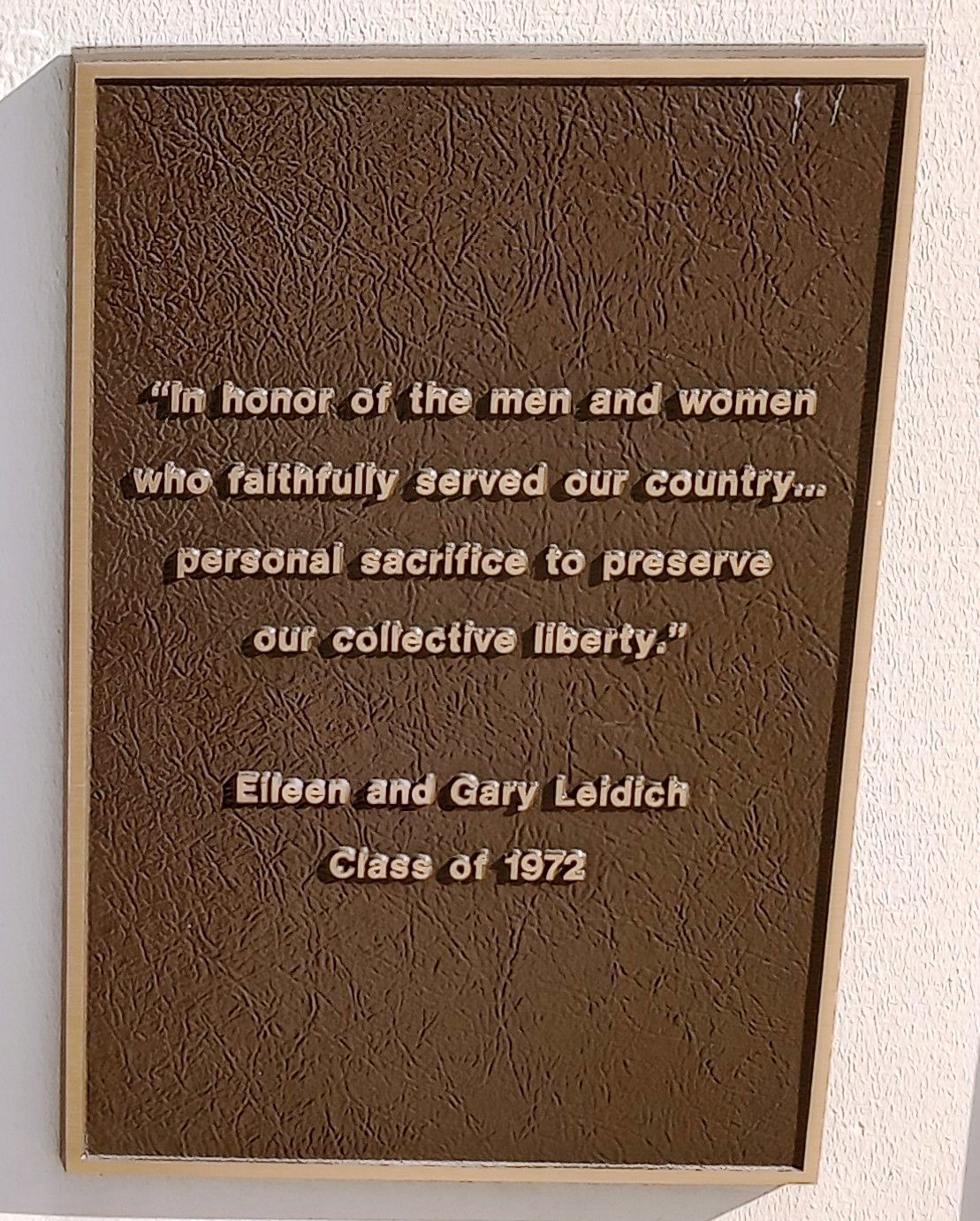 CLASS OF 72 VETERANS MEMORIAL PLAQUE