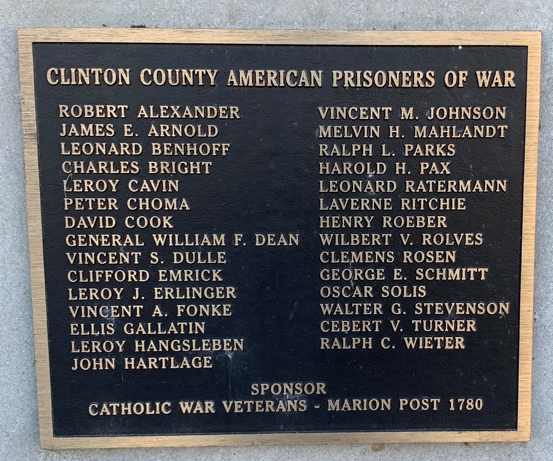 CLINTON COUNTY AMERICAN PRISONERS OF WAR MEMORIAL PLAQUE