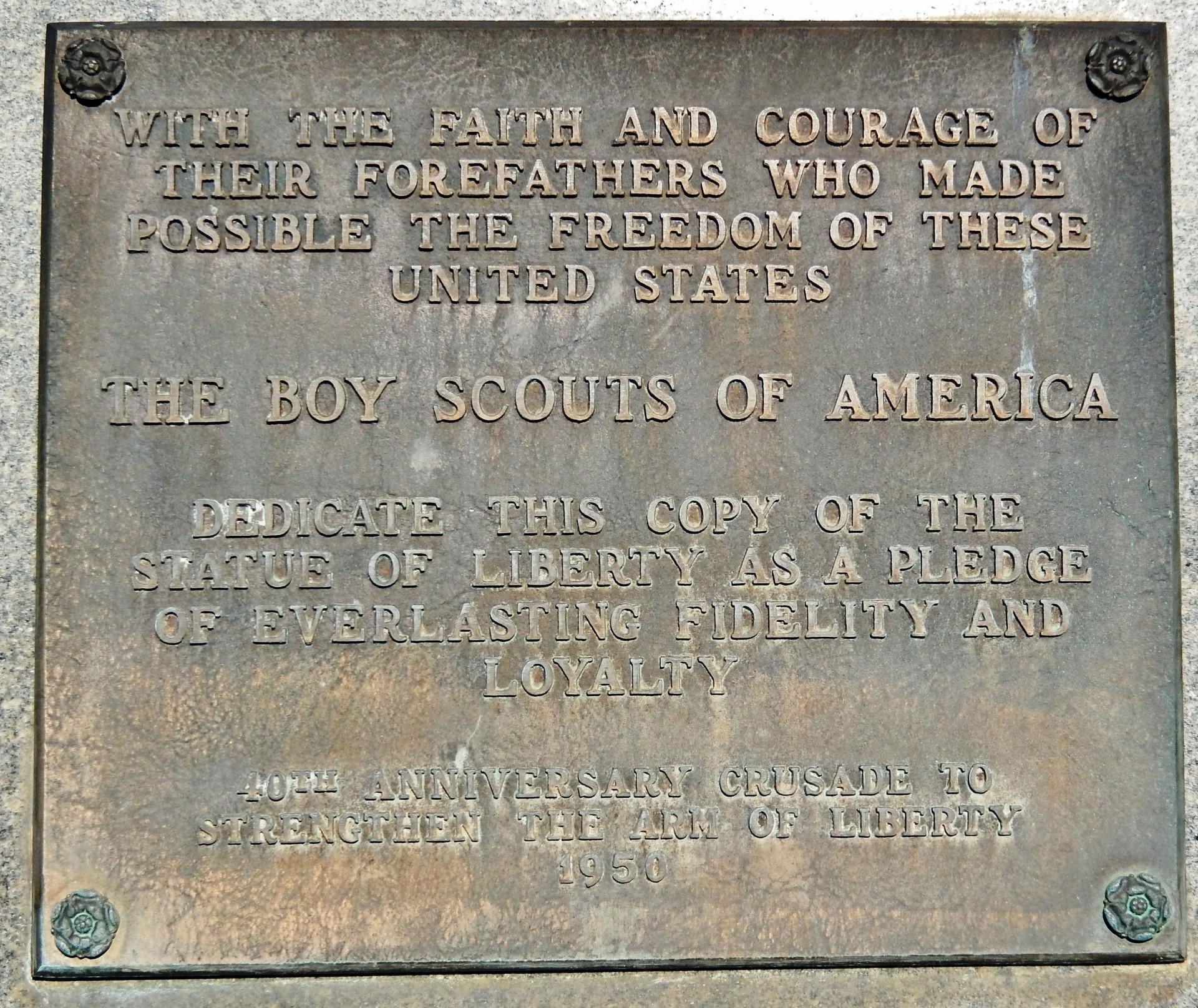COLUMBUS REPLICA OF THE STATUE OF LIBERTY MEMORIAL PLAQUE