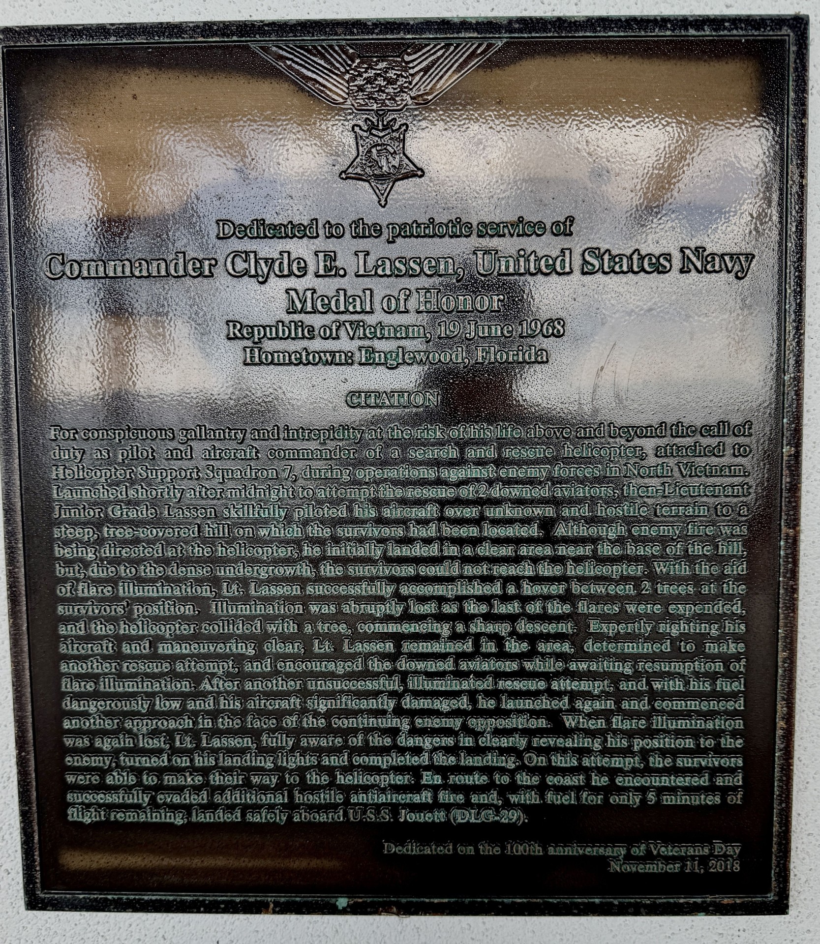 COMMANDER CLYDE E. LASSEN MEDAL OF HONOR MEMORIAL PLAQUE