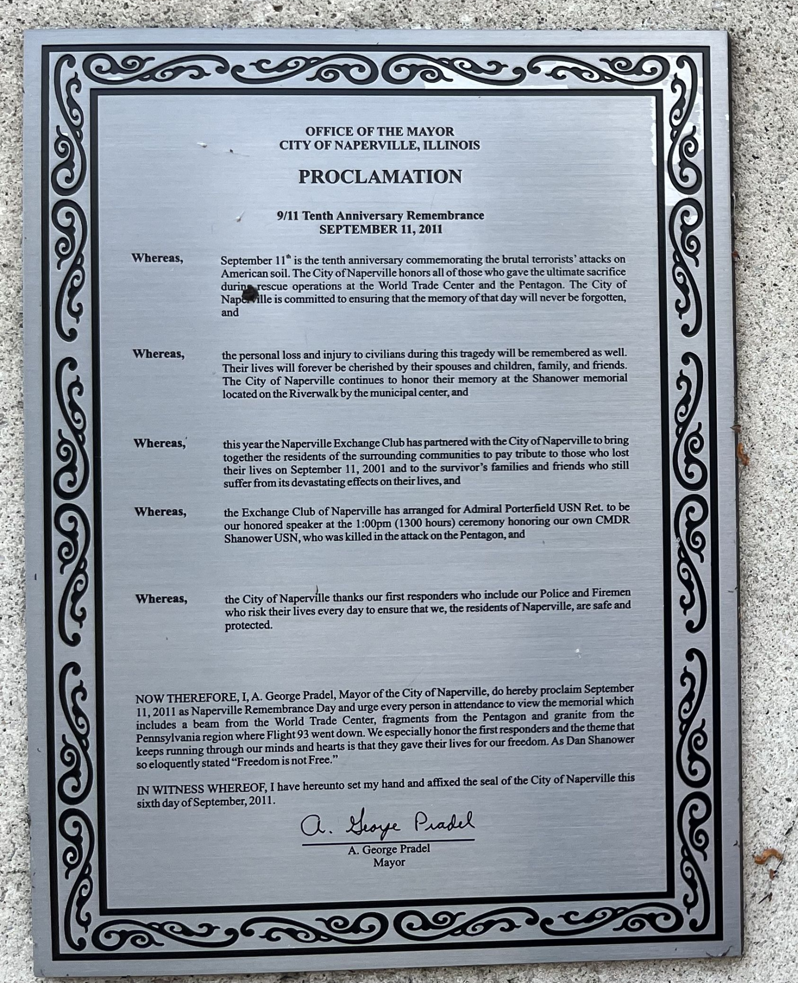 COMMANDER DAN SHANOWER SEPTEMBER 11, 2001 MEMORIAL PLAQUE C