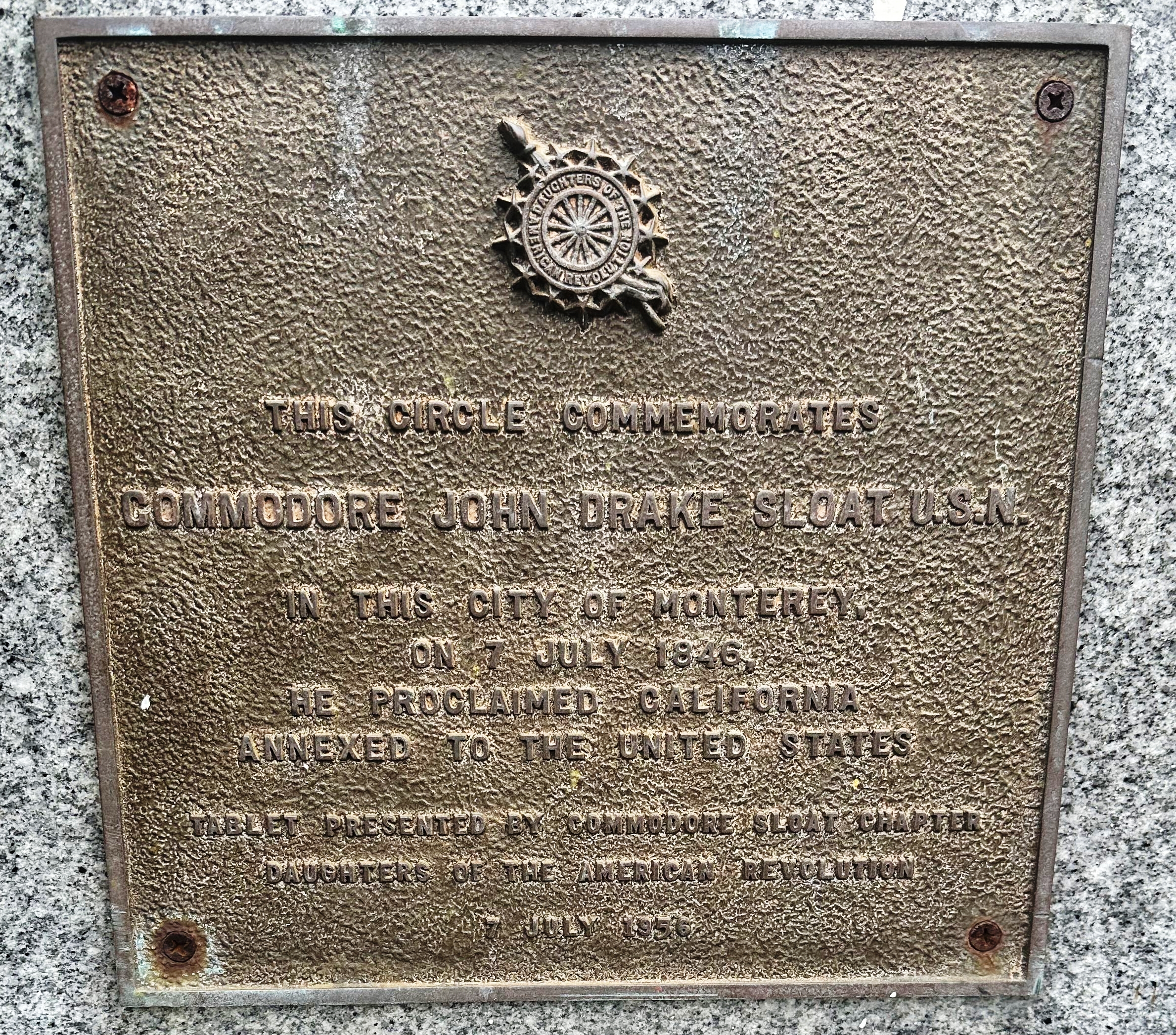 COMMODORE JOHN DRAKE SLOAT CIRCLE MEMORIAL PLAQUE