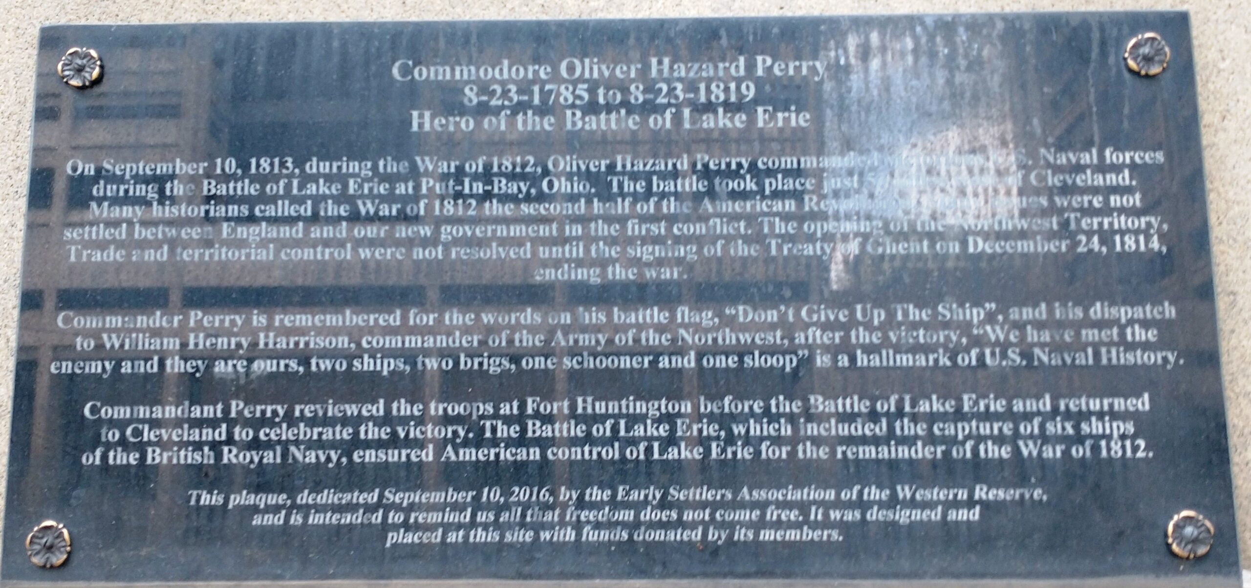COMMODORE OLIVER HAZARD PERRY HERO OF BATTLE OF LAKE ERIE MEMORIAL PLAQUE