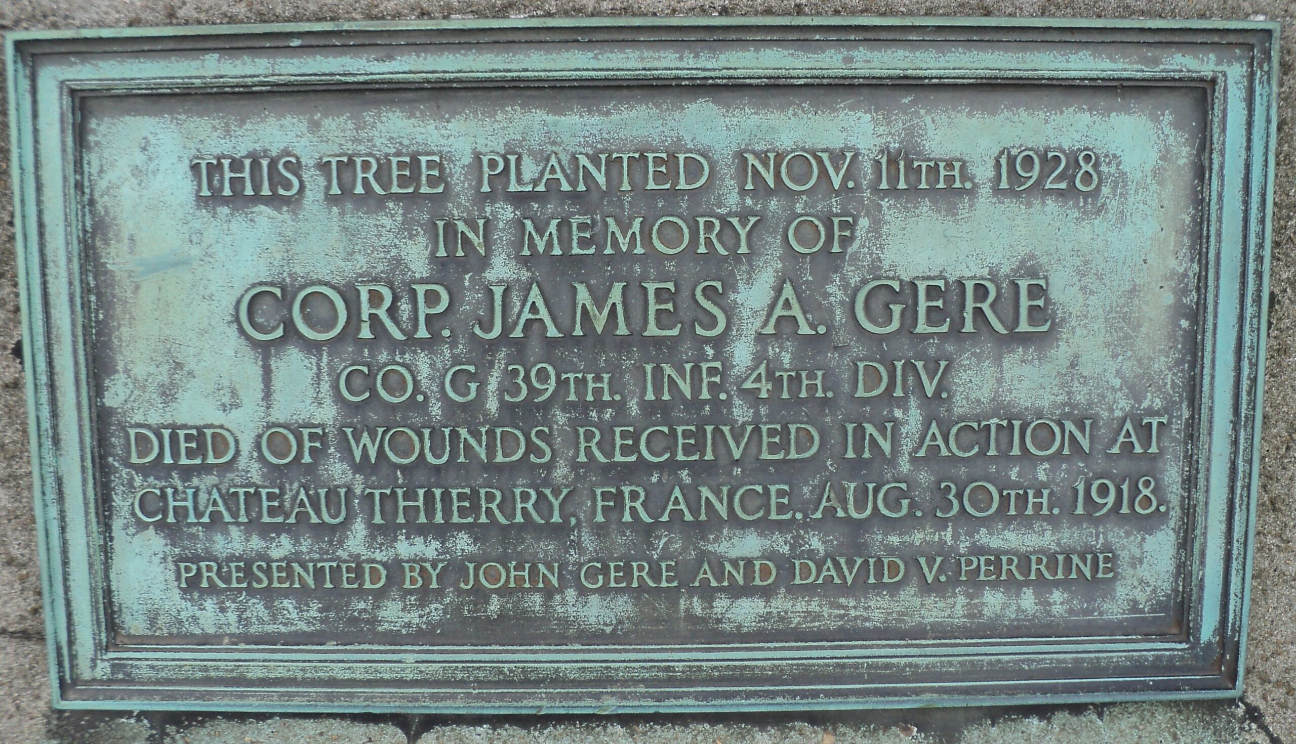 CORP JAMES A. GERE WAR MEMORIAL TREE PLAQUE