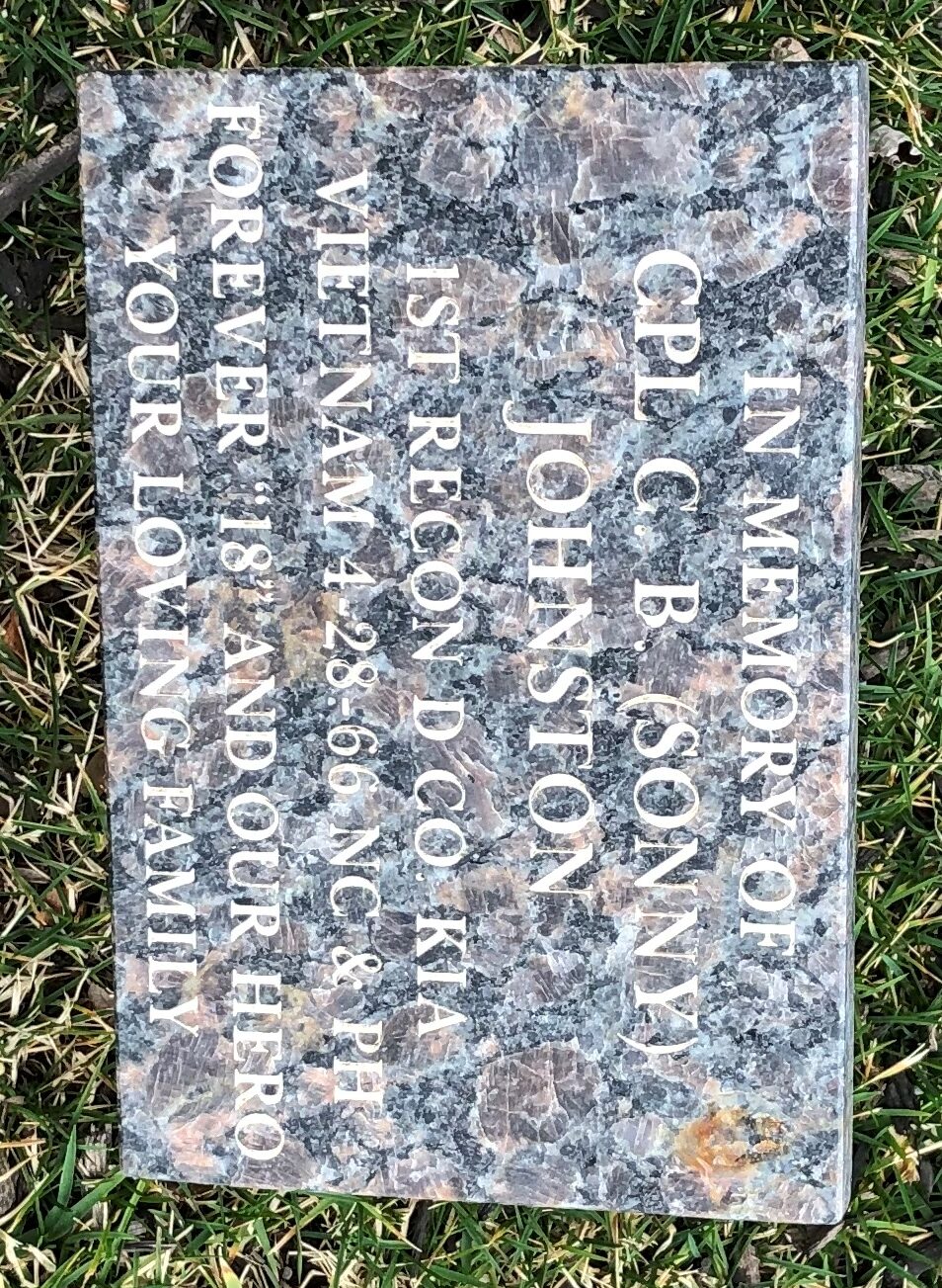 CPL G.B. (SONNY) JOHNSON WAR MEMORIAL TABLET