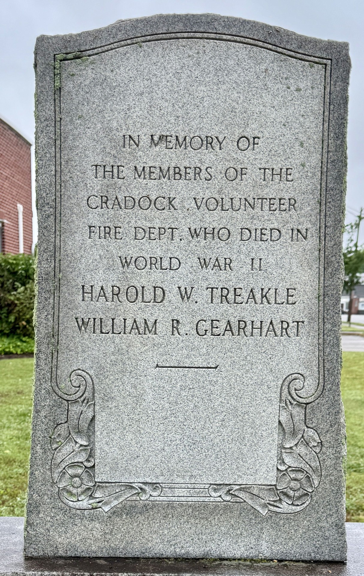 CRADOCK VOLUNTEER FIRE DEPT WORLD WAR II SUPREME SACRIFICE