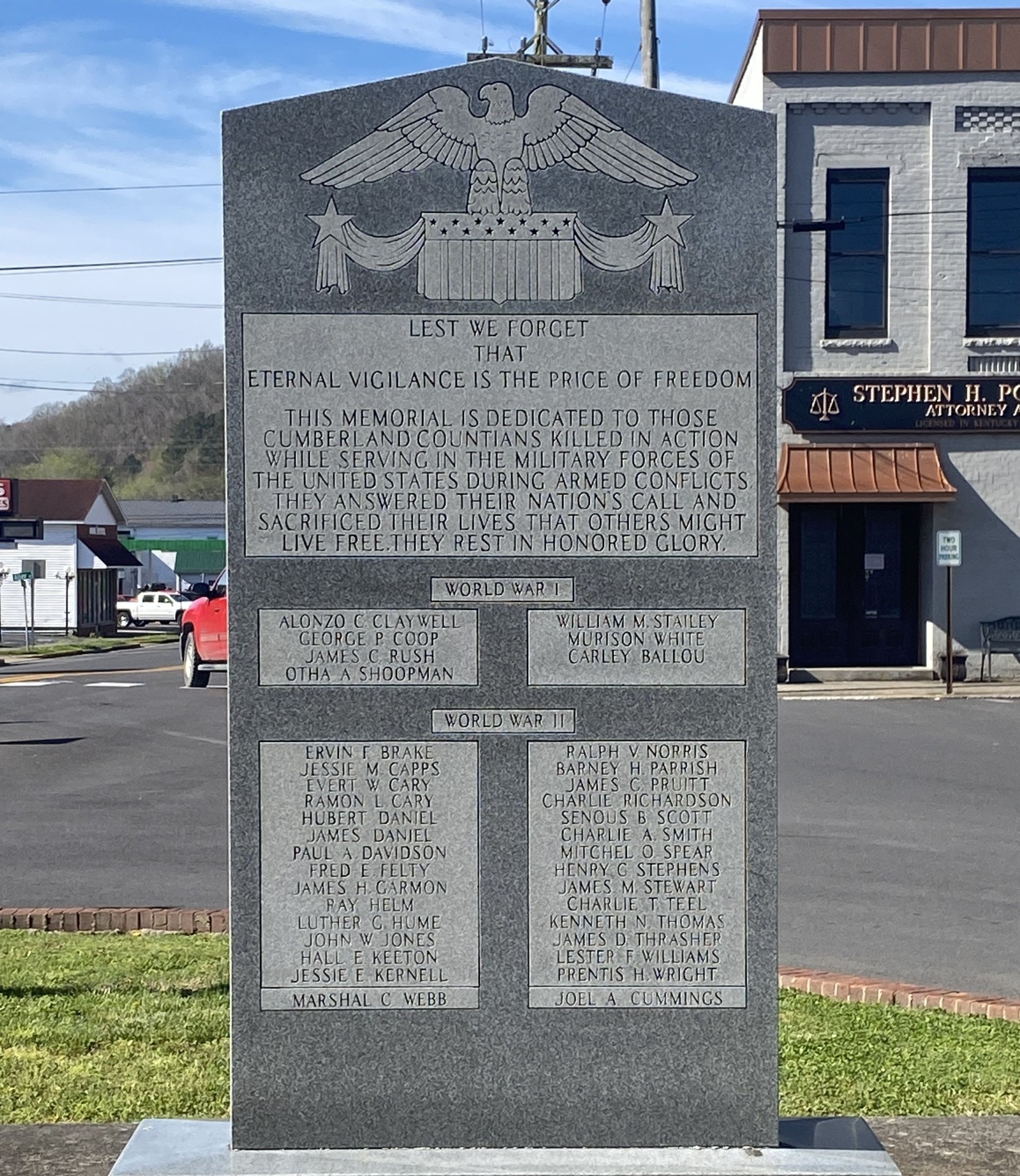 Wars Commemorated: WORLD WAR I AND WORLD WAR II