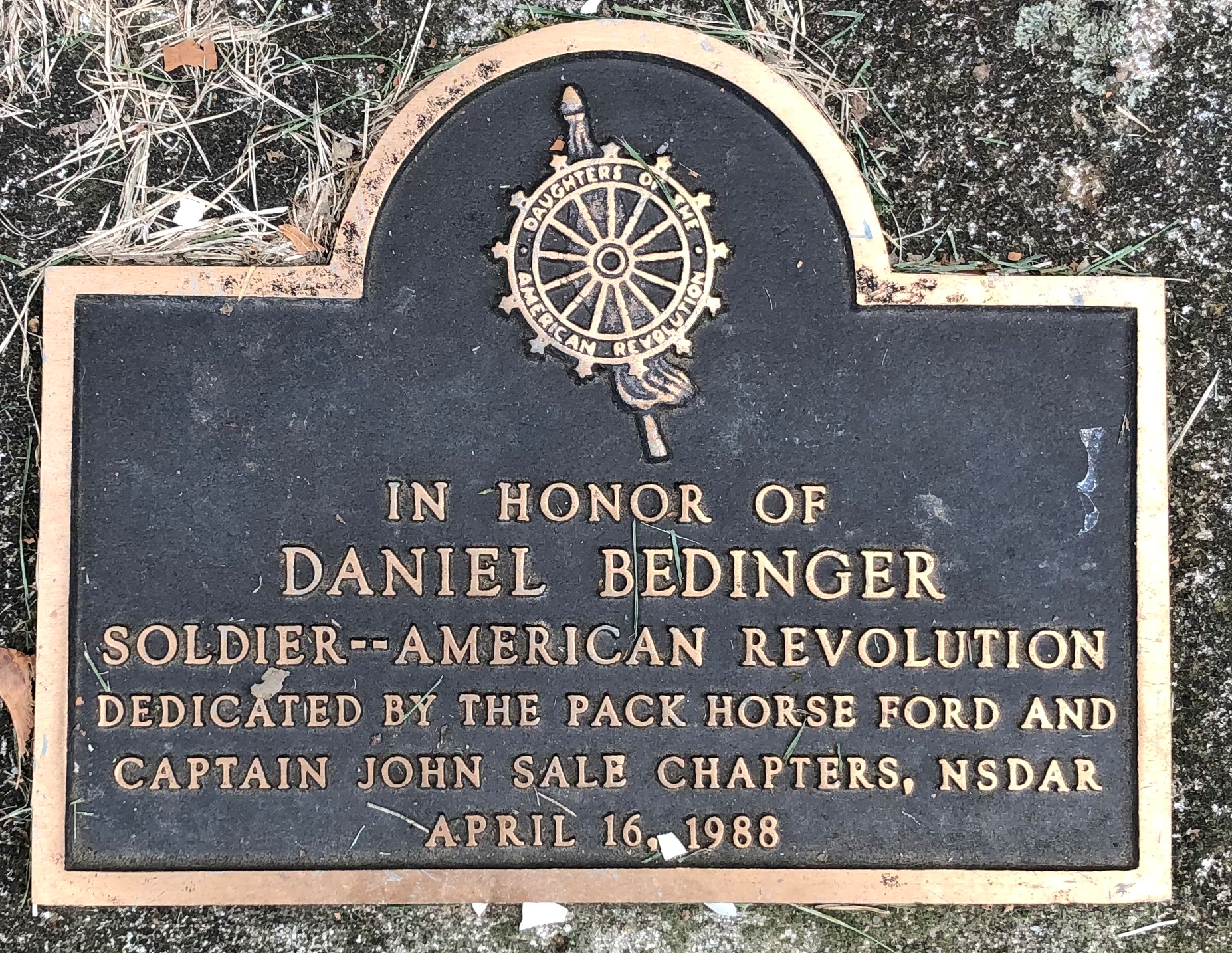 DANIEL BEDINGER SOLDIER AMERICAN REVOLUTION MEMORIAL PLAQUE