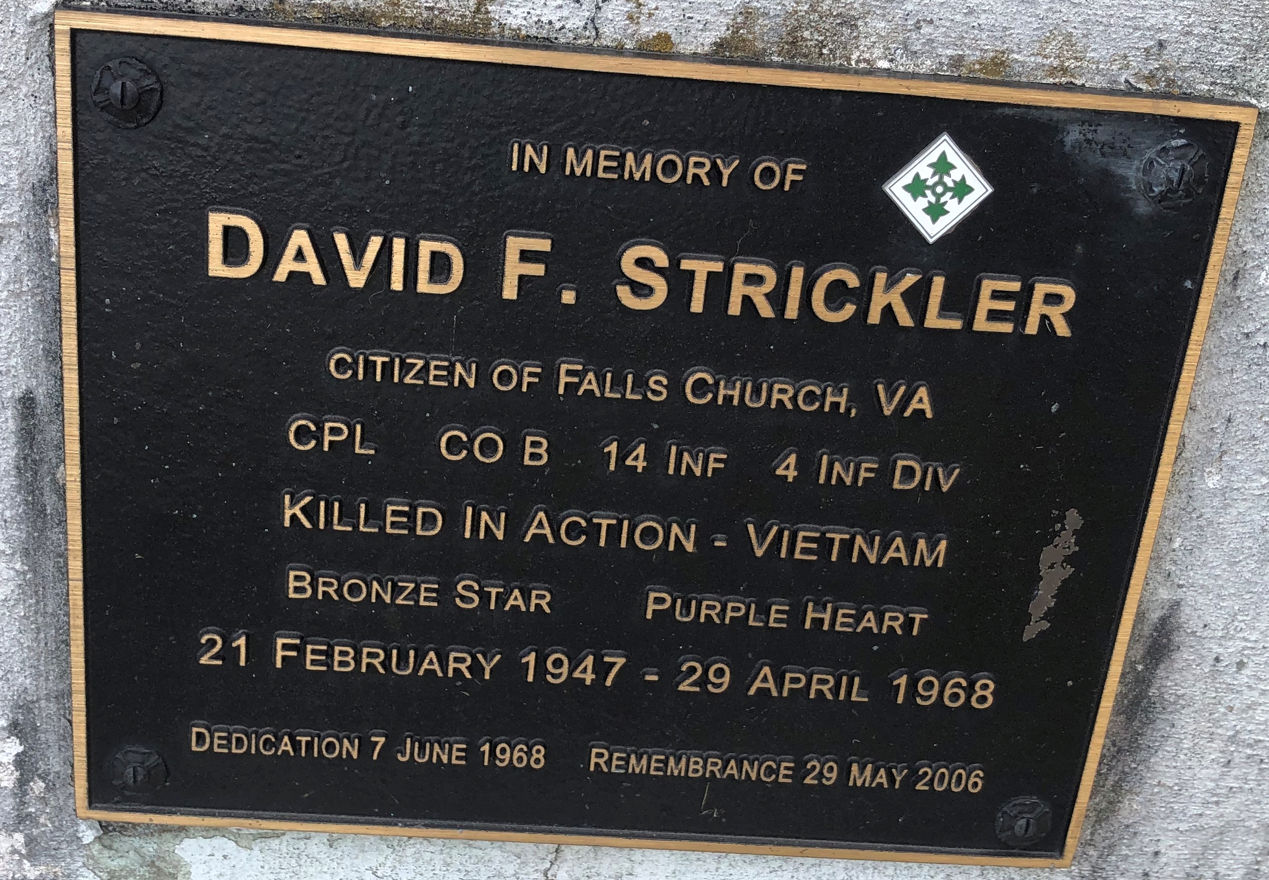 DAVID F. STRICKLER WAR MEMORIAL FLAGPOLE PLAQUE
