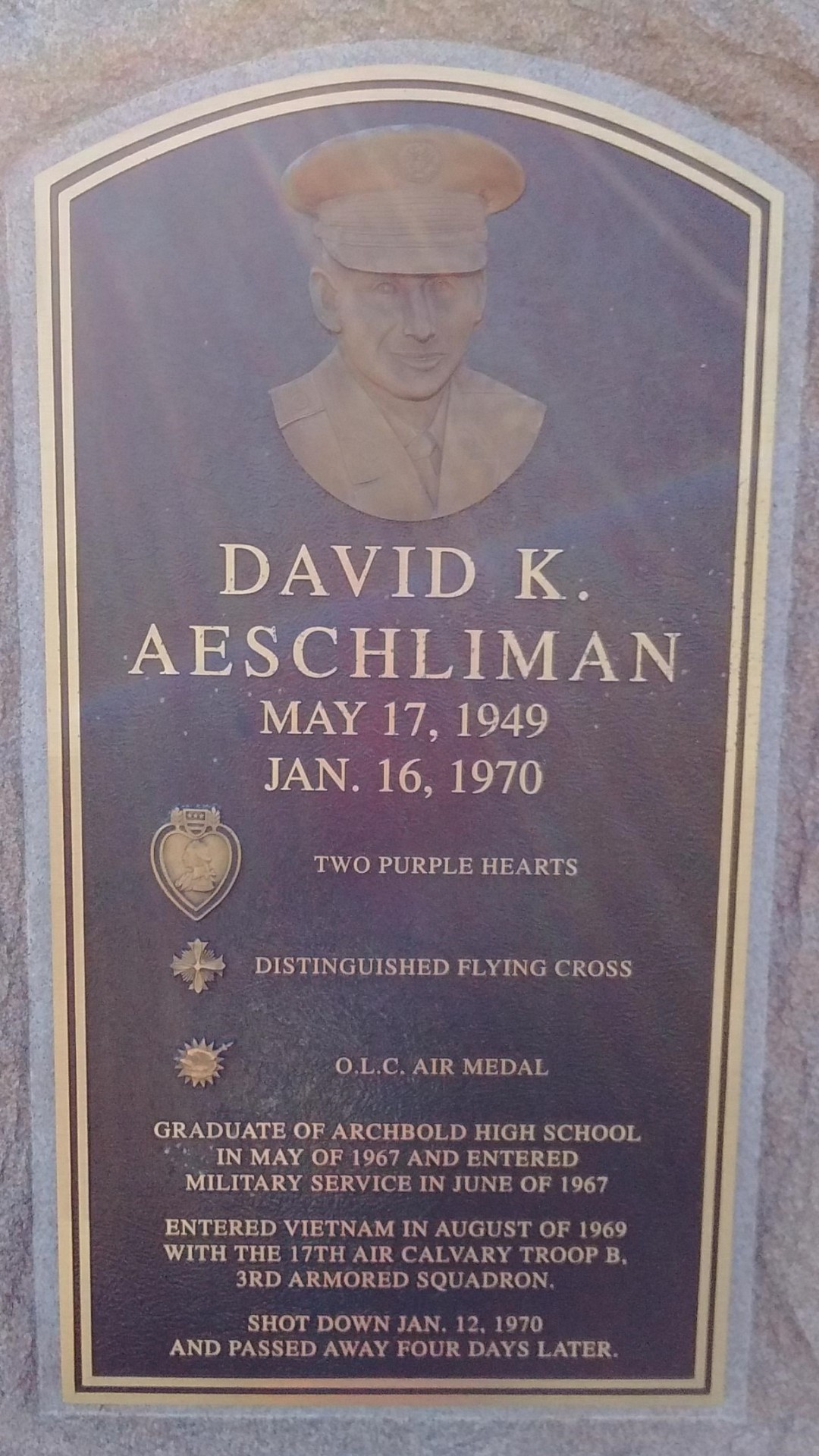 DAVID K. AESCHLIMAN WAR MEMORIAL PLAQUE A
