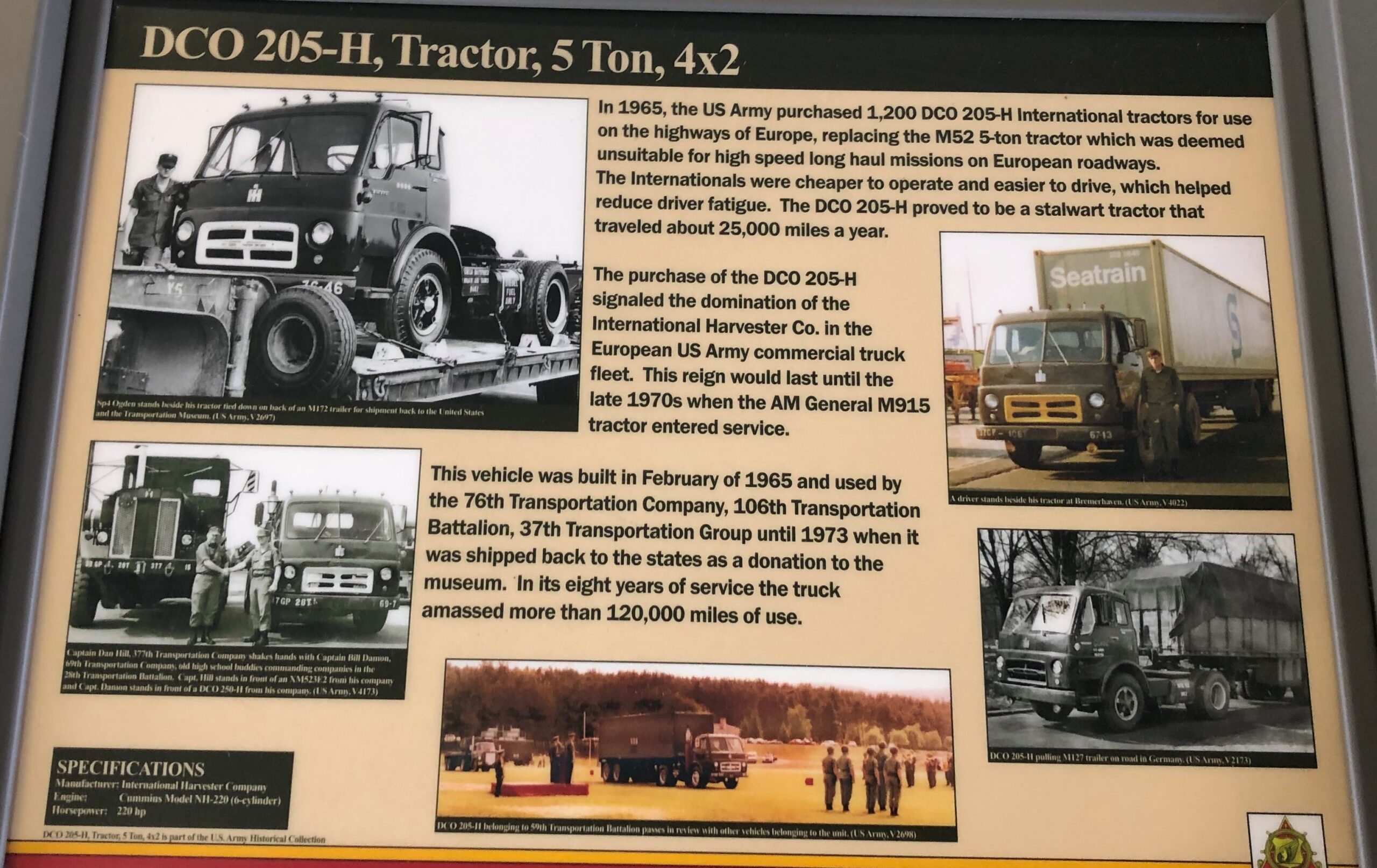 DCO 205-H, TRACTOR, 5 TON, 4X2 MEMORIAL PANEL