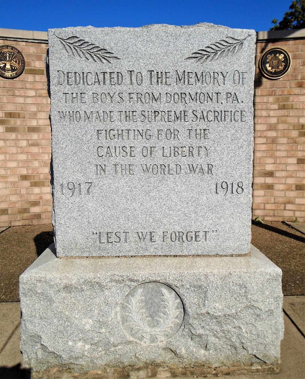 DORMONT, PA. WORLD WAR SUPREME SACRIFICE MEMORIAL