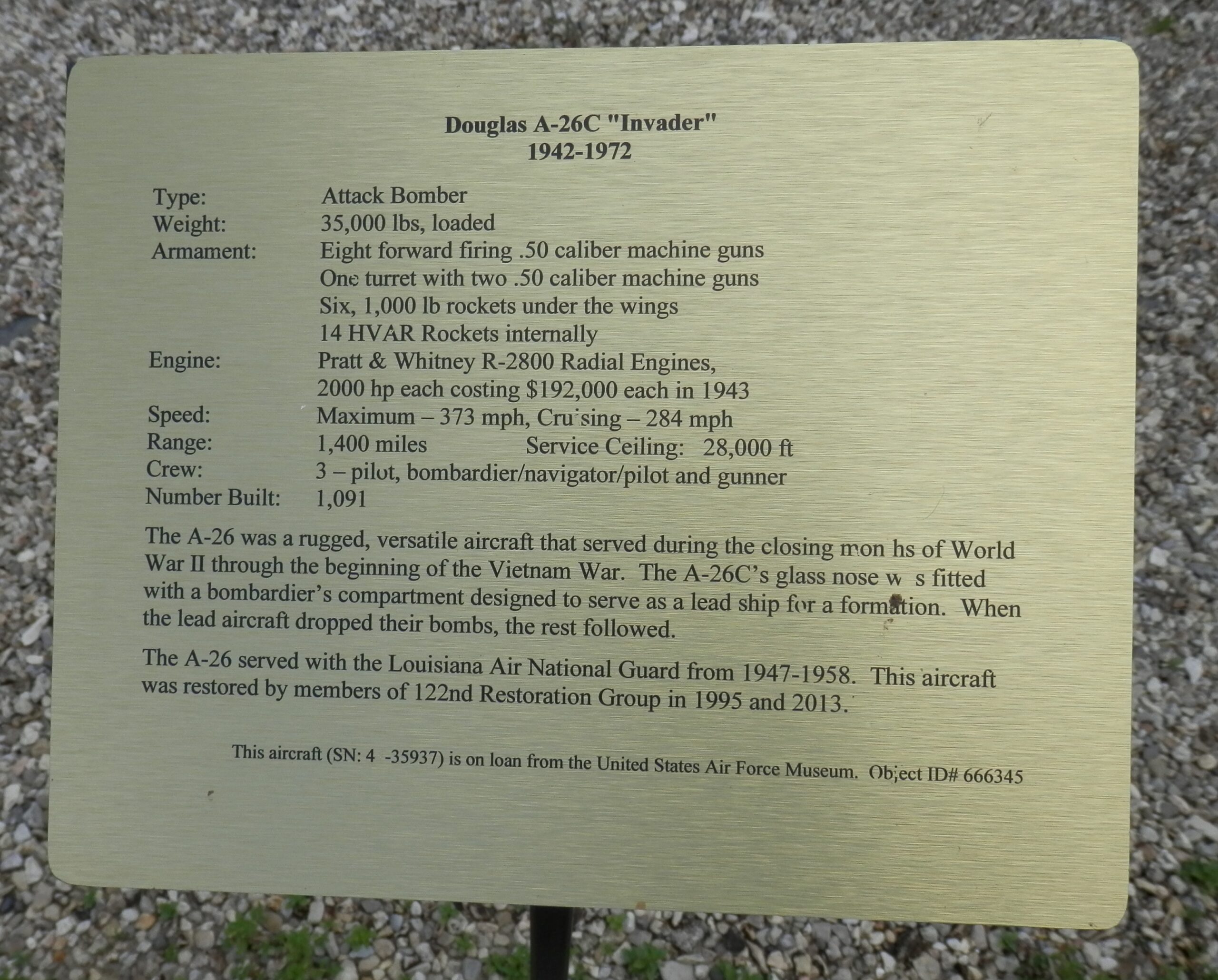 DOUGLAS A-26C “INVADER” MEMORIAL AIRCRAFT PLAQUE