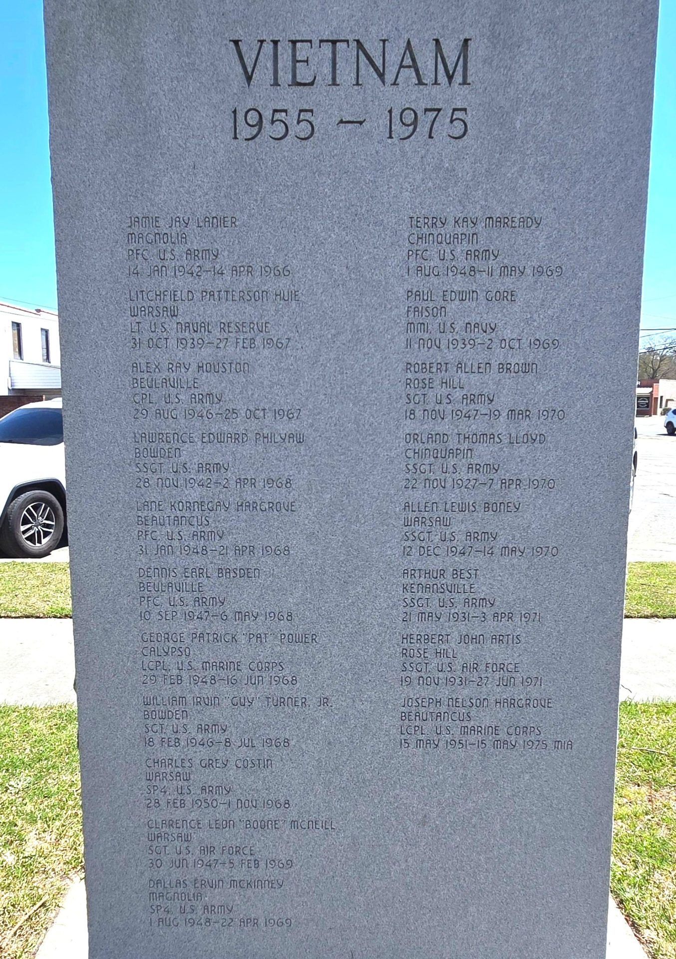 SEE ALSO-DUPLIN COUNTY’S SUPREME SACRIFICE VIETNAM WAR MEMORIAL FRONT