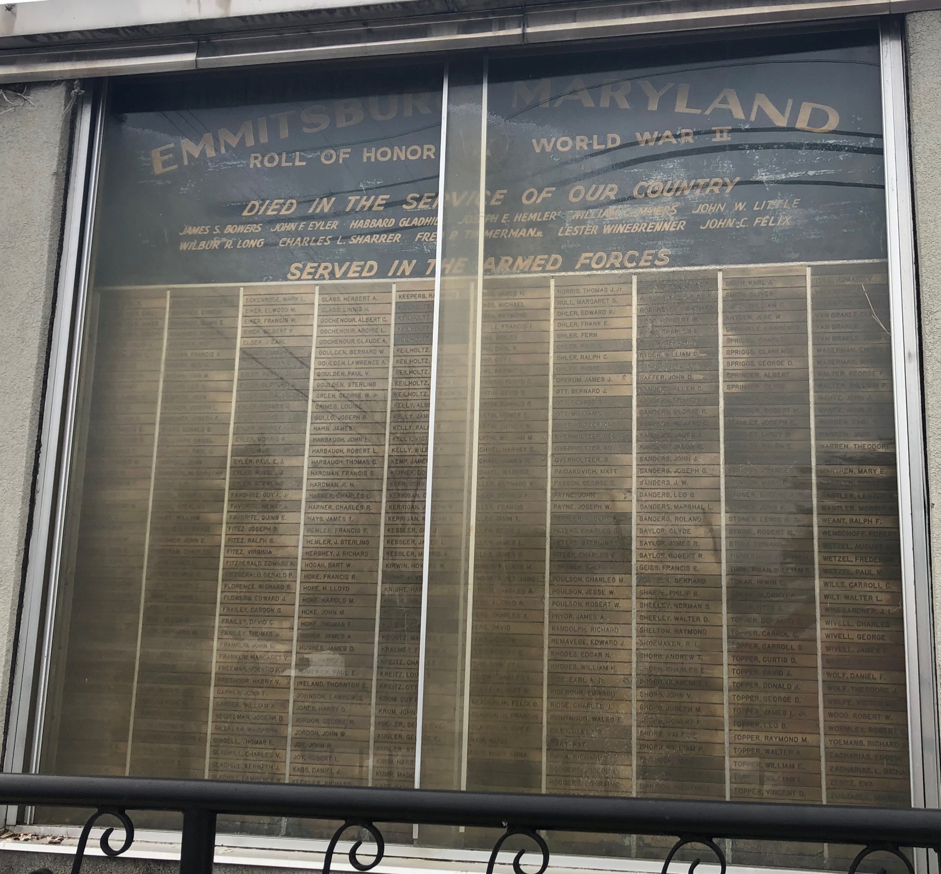 EMMITSBURG MARYLAND ROLL OF HONOR WORLD WAR II MEMORIAL