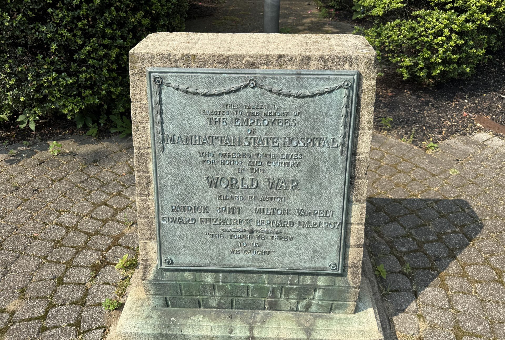 EMPLOYEES OF MANHATTAN STATE HOSPITAL WORLD WAR MEMORIAL