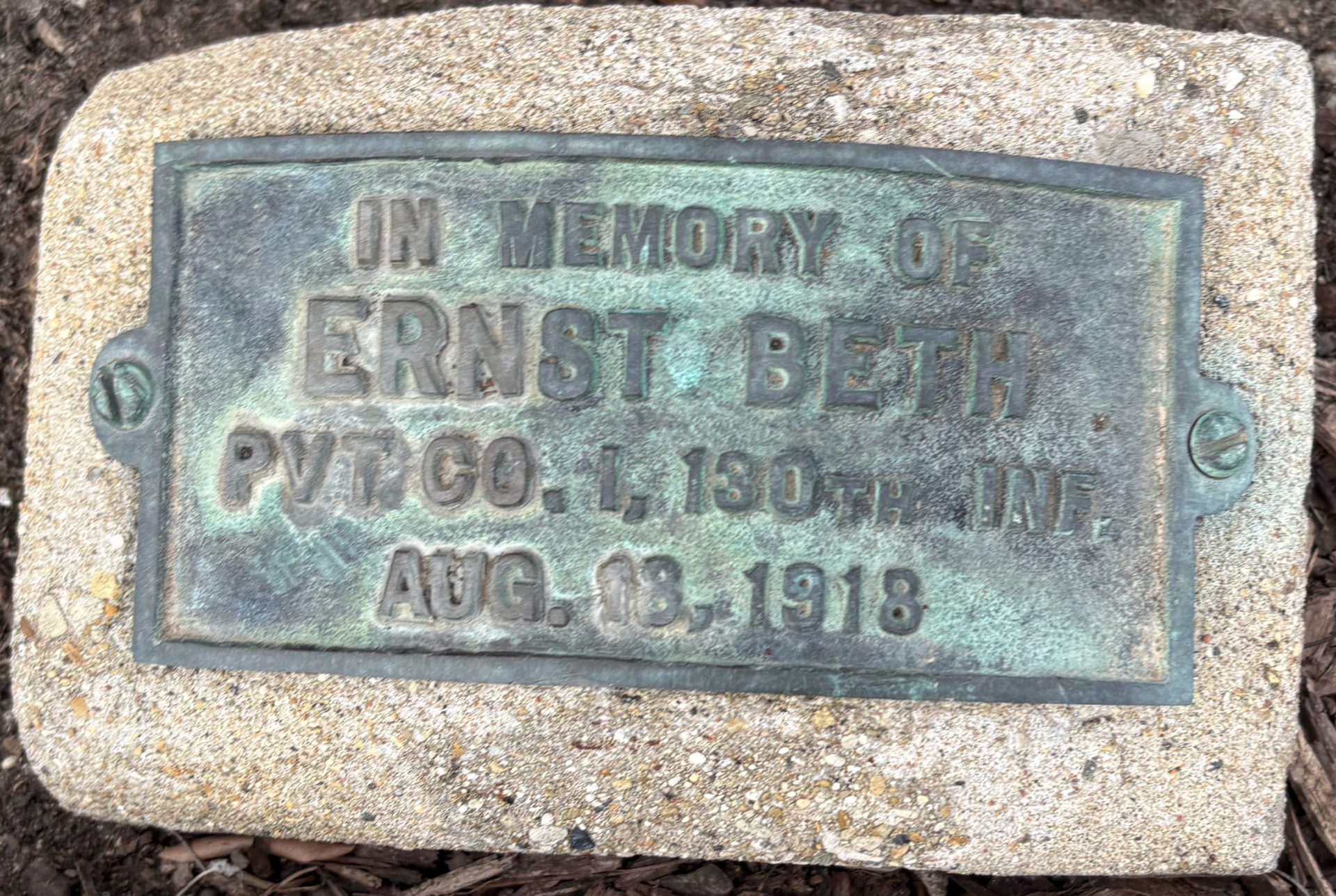 ERNEST BETH WAR MEMORIAL PLAQUE