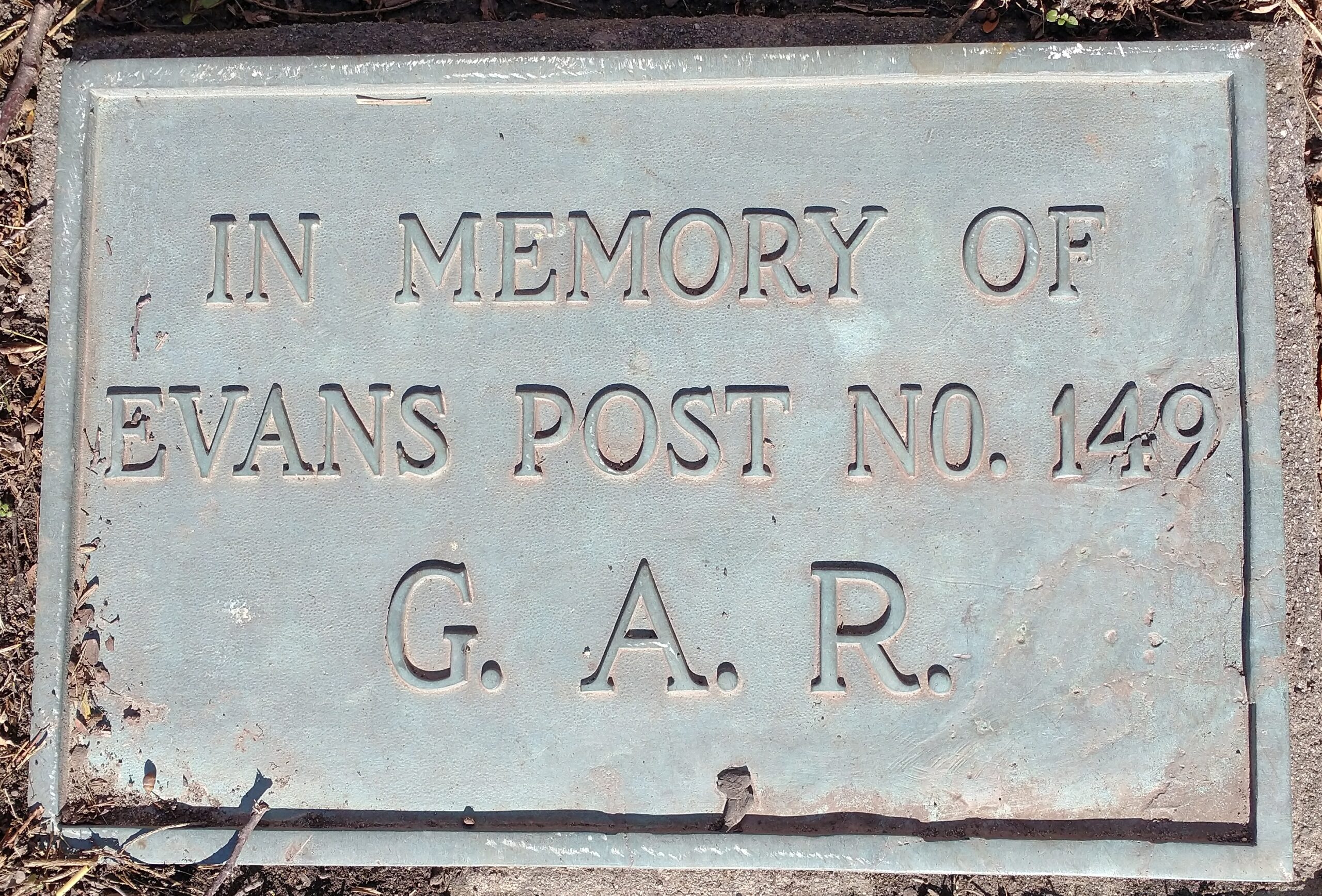 EVANS POST NO. 149 G.A.R. MEMORIAL PLAQUE