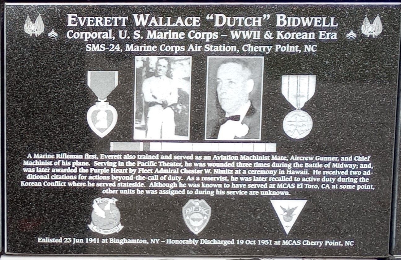 EVERETT WALLACE “DUTCH” BIDWELL WAR MEMORIAL PLAQUE