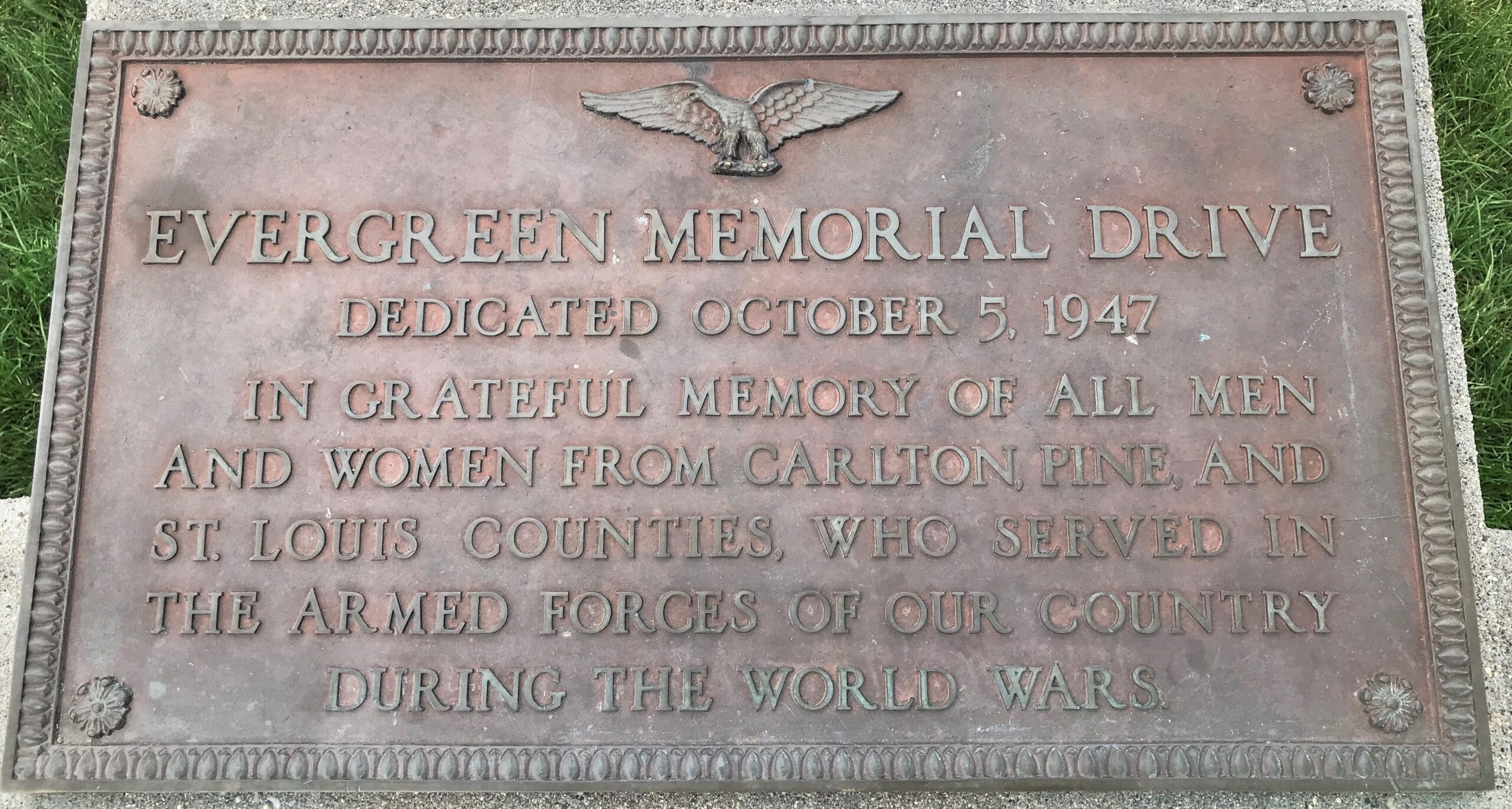 EVERGREEN MEMORIAL DRIVE PLAQUE