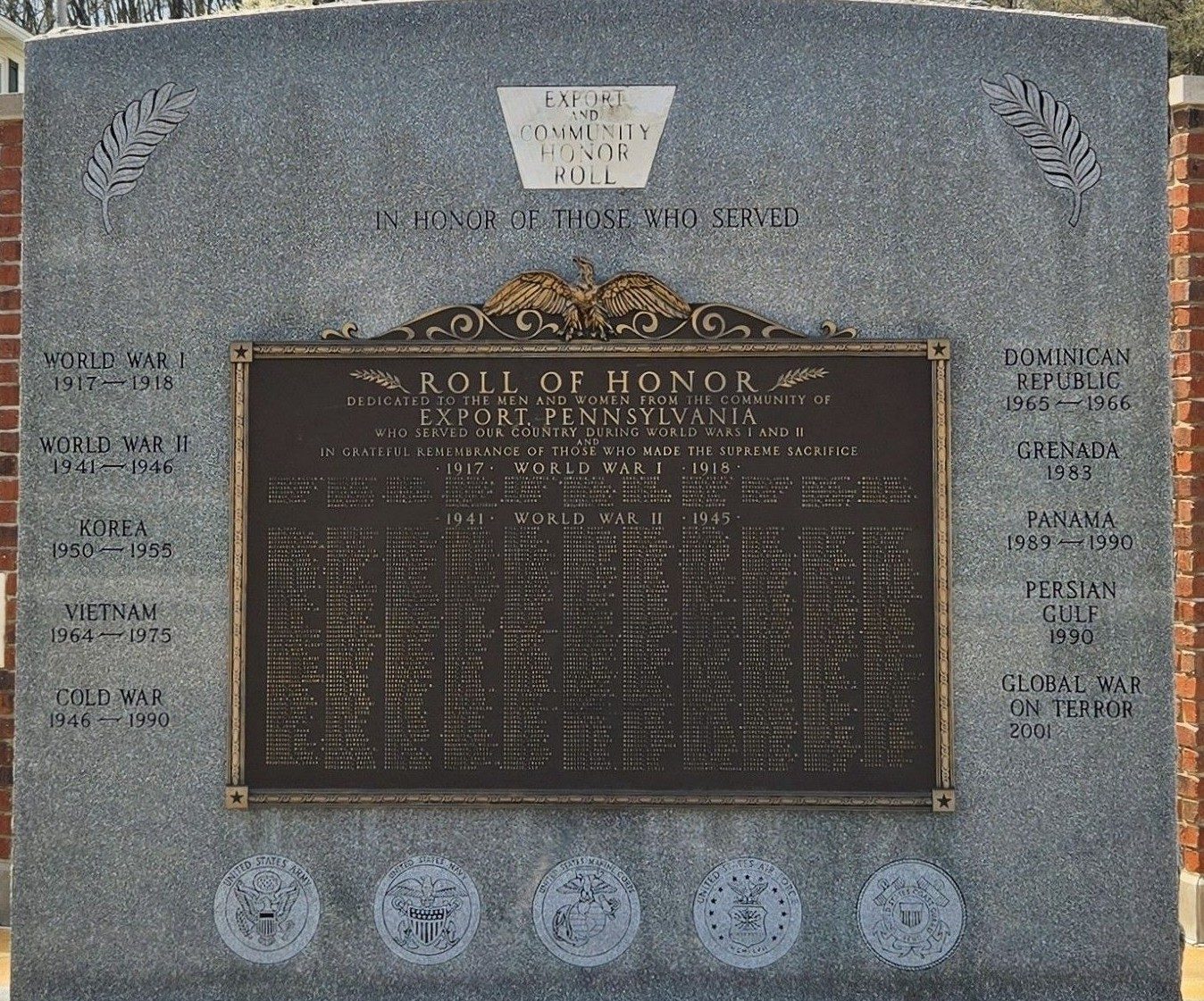 EXPORT AND COMMUNITY HONOR ROLL AND AMERICAN LEGION POST 858 WAR MEMORIAL CENTER STONE