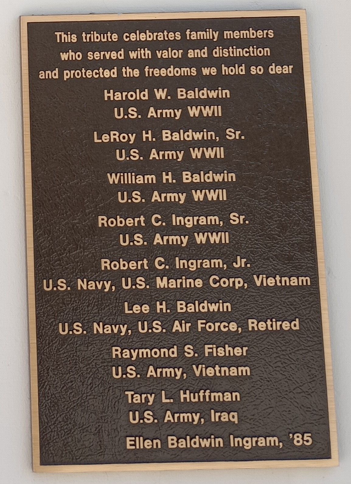 FAMILY MEMBERS SERVED WITH VALOR VETERANS MEMORIAL PLAQUE
