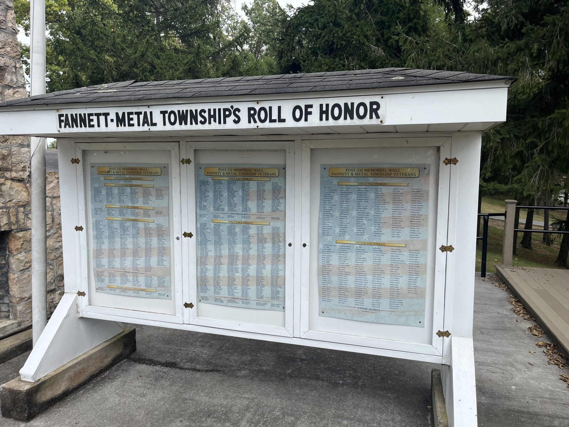 FANNETT-METAL TOWNSHIP’S ROLL OF HONOR MEMORIAL FRONT