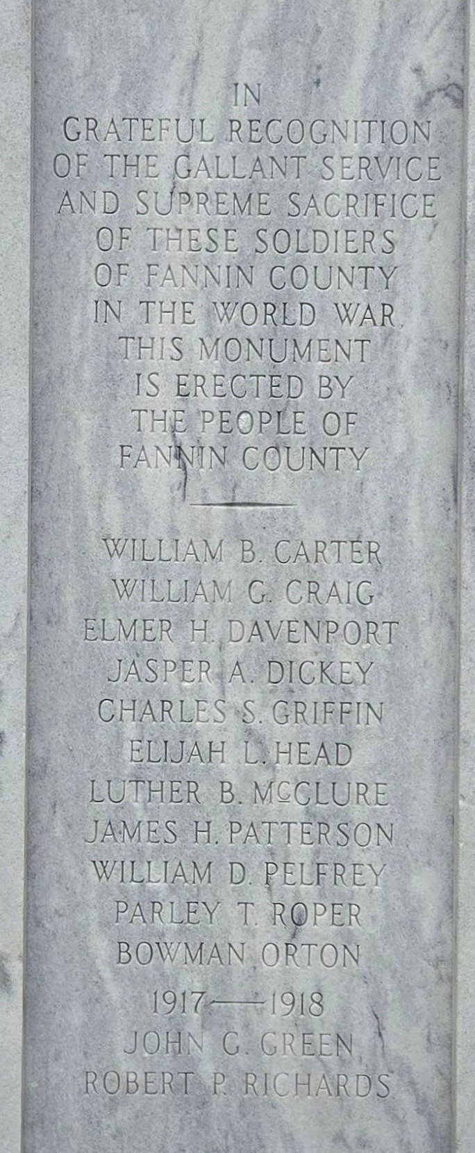 FANNIN COUNTY SUPREME SACRIFICE WAR MEMORIAL SIDE A