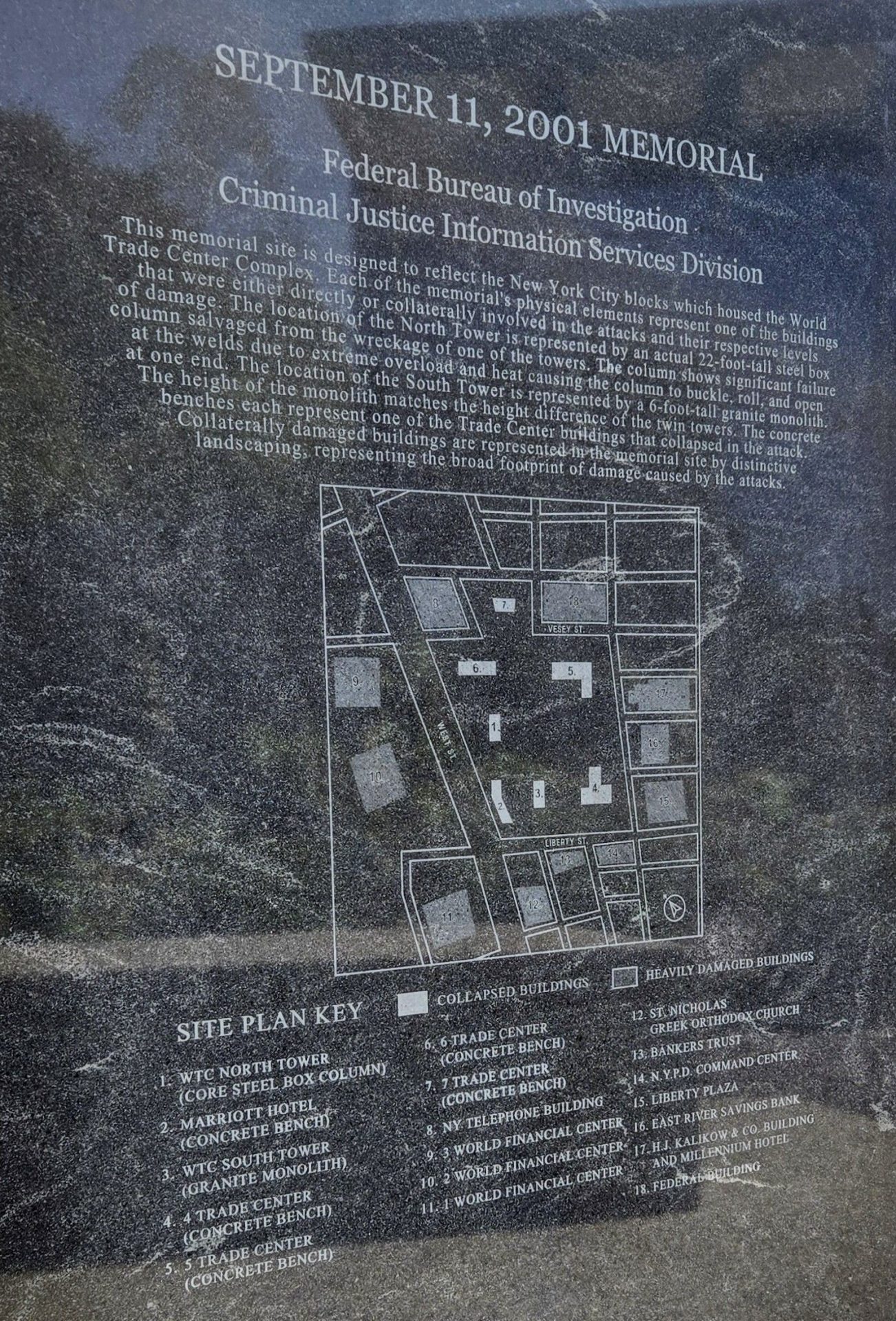 FBI SEPTEMBER 11, 2001 MEMORIAL STONE BACK